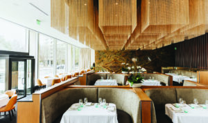Take in the scenery, too, whether it’s the Isamu Noguchi sculpture on the outdoor patio of the First on 7th building or the thoughtfully designed interiors by Ibañez Shaw Architecture, a Fort Worth-based firm. Choose a window-side seat or one of the curvy booths under the modern Italian chandelier made up of chains in the center of the dining room.
