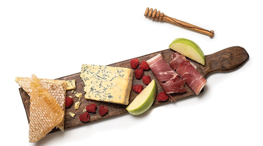 Bees harvest flower nectar, break it down into sugar and deposit it in a honeycomb, where we collect it. Raw honeycomb is edible and is reputed to raise good cholesterol levels and lower blood pressure. Don’t overlook the value a wedge of the comb adds to a cheese board.