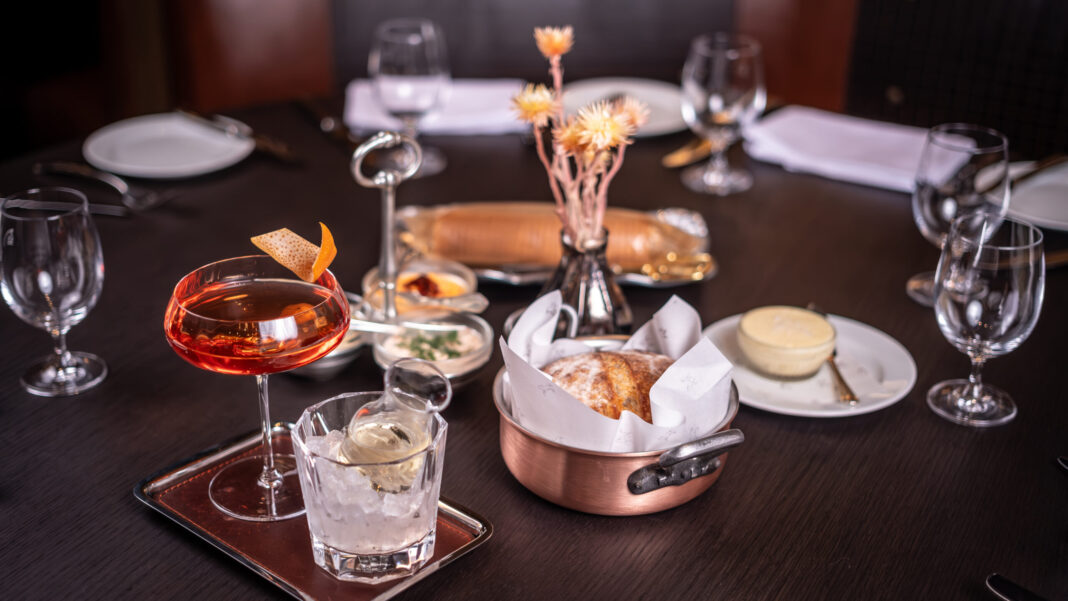 An enormous vintage wooden bar found in a Central Texas antique dealer’s shop commands attention in The Bar. If you’re stopping by for happy hour or a post-dinner drink, trust beverage director Mikey Riojas (a familiar face from 61 Osteria and Magnolia Wine Bar) to come up with an intriguing option. Among cocktails to consider, there’s the Rambling Mr. Crosby, which Riojas describes as “a riff on a spritzer, made with gin, grapefruit cordial with a short carafe of sparkling wine on the side to add as you sip.”