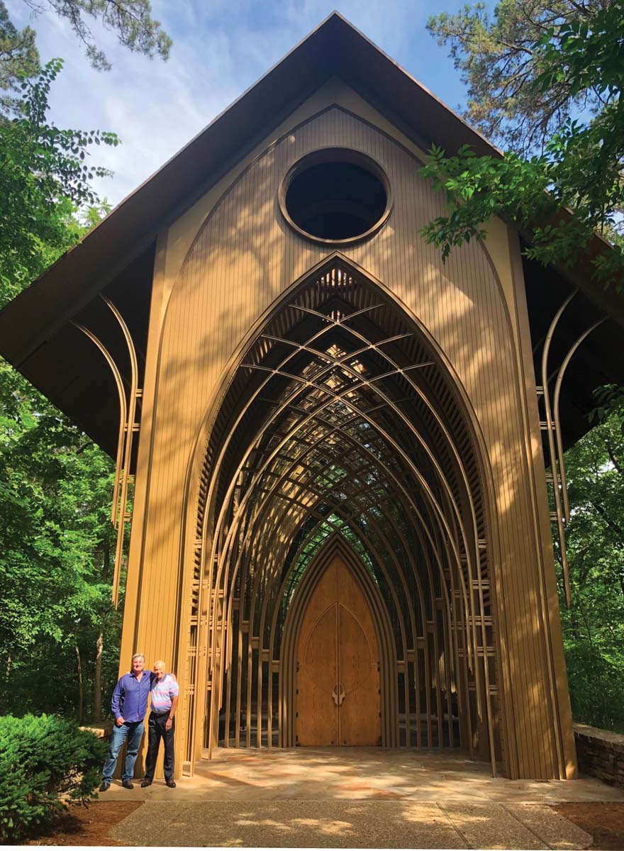 To gather background, the two men traveled to Arkansas, which is home to the breathtaking Thorncrown Chapel outside of Eureka Springs. The chapel rises 48 feet high, and contains 425 windows and 6,000 square feet of glass. More than 6 million people have visited the sanctuary in the woods since it opened in 1980.