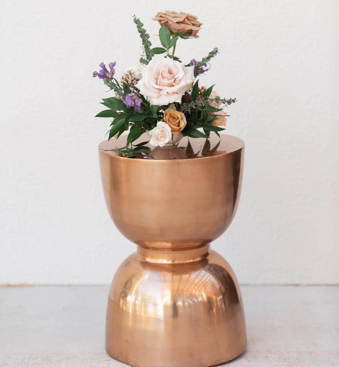 This chic yet adorable copper side table (provided by gold dust girls) reflected the natural light on the expansive terrace beautifully and provided a perfect spot to highlight the gorgeous floral created by Vivienne and Vine.