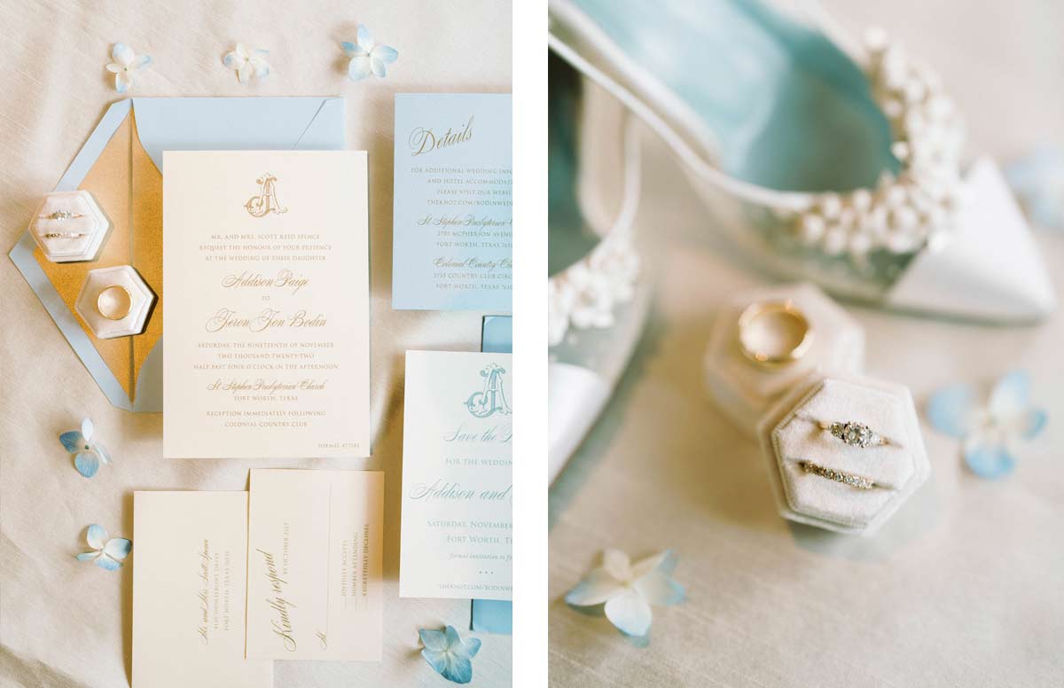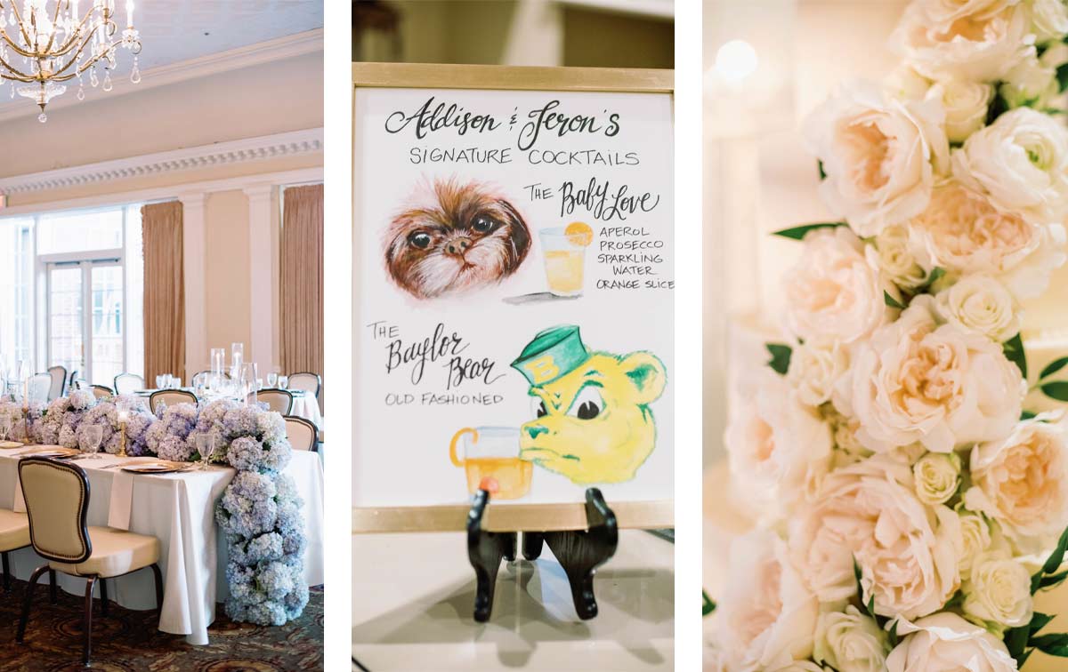 Venues: St. Stephen Presbyterian Church, Colonial Country Club; Planner: Alice Allen Event; Photographer: Avery Ear; Florist: Rosie’s Floral Design; Caterer: Colonial Country Club; Stationery: Paper Affair; Cake: Hey Good Lookin’ Cakes; Band: Manhattan Band; Hair + Makeup: MMG Beauty; Bartending: Colonial Country Club; Videographer: Kendall Reppert Media; Rentals: Grand Events; Dress: Patsy’s Bridal Boutique; Bridesmaids Dresses: Bella Bridesmaids; Men’s Tux: The Black Tux; Coffee Cart: Bloom & Pour; Transportation: IGPort; Exit car: DFW Vintage Cars