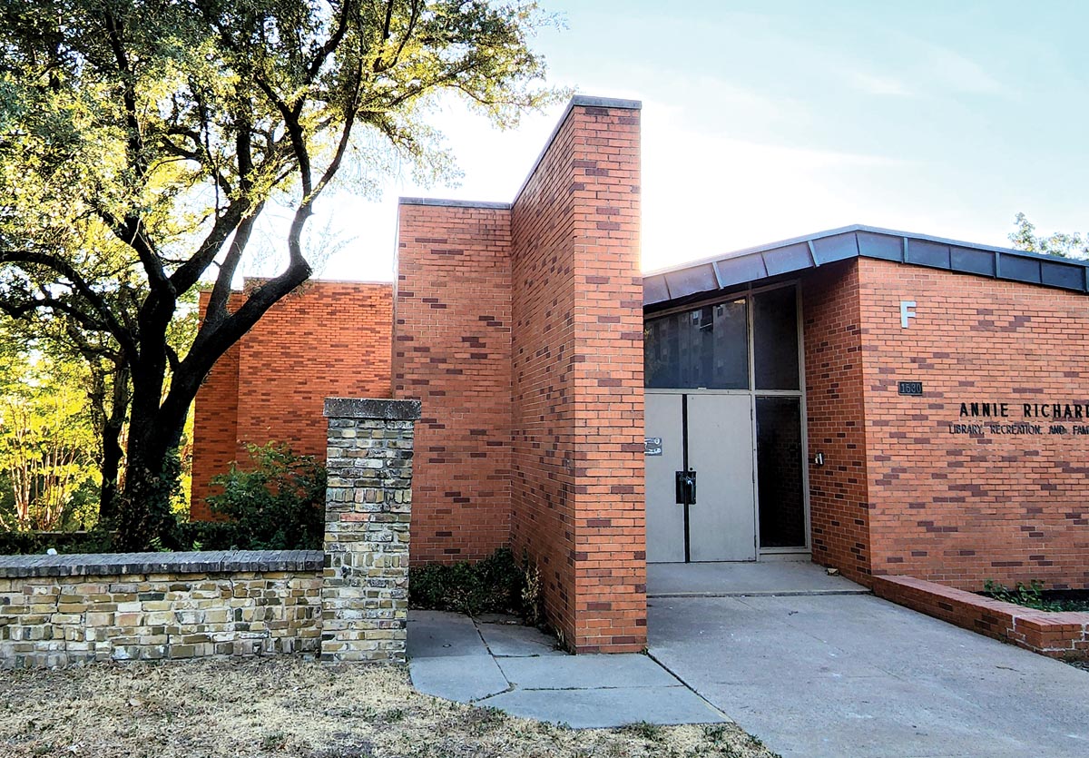 But even so, the last standing remnant of the All Church Home for Children (see sidebar on its history) is intriguing at a glance, thanks to the multiple panes of glass surrounding the double steel entry doors and the raised block letters that label the building: Annie Richardson Bass Library, Recreation and Family Education Center.