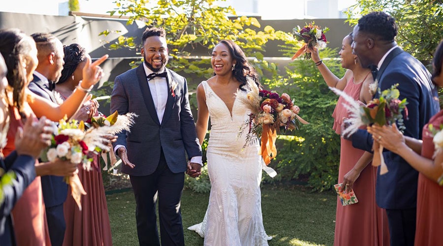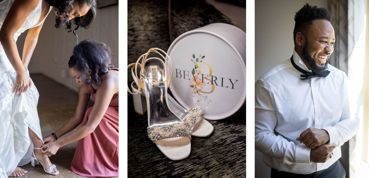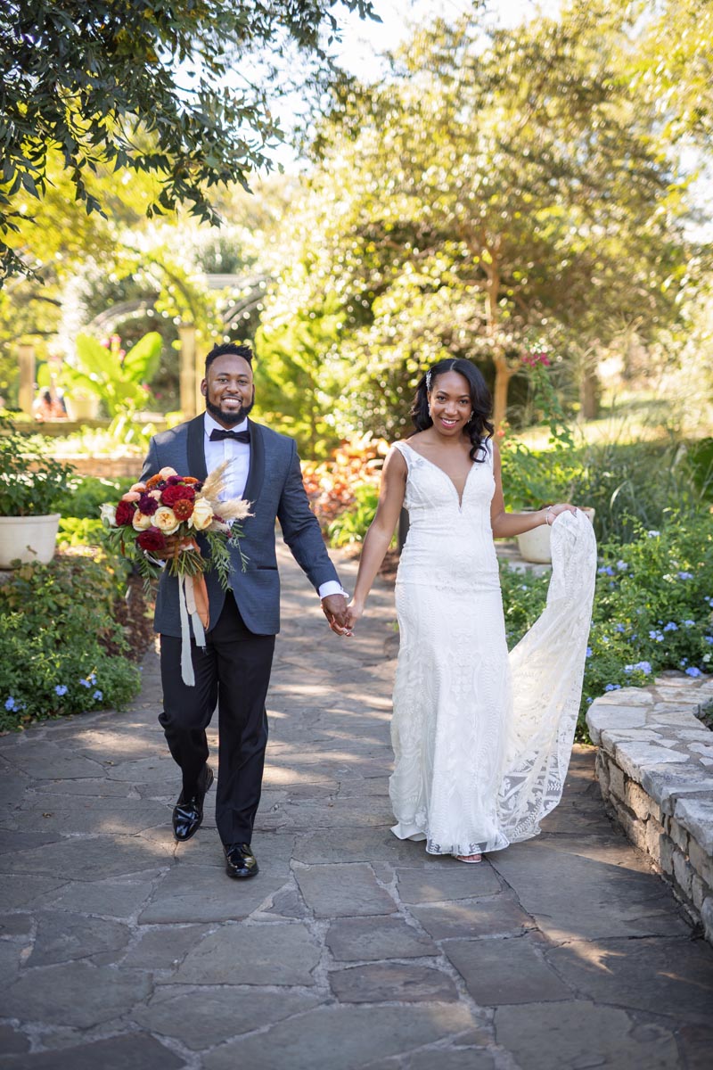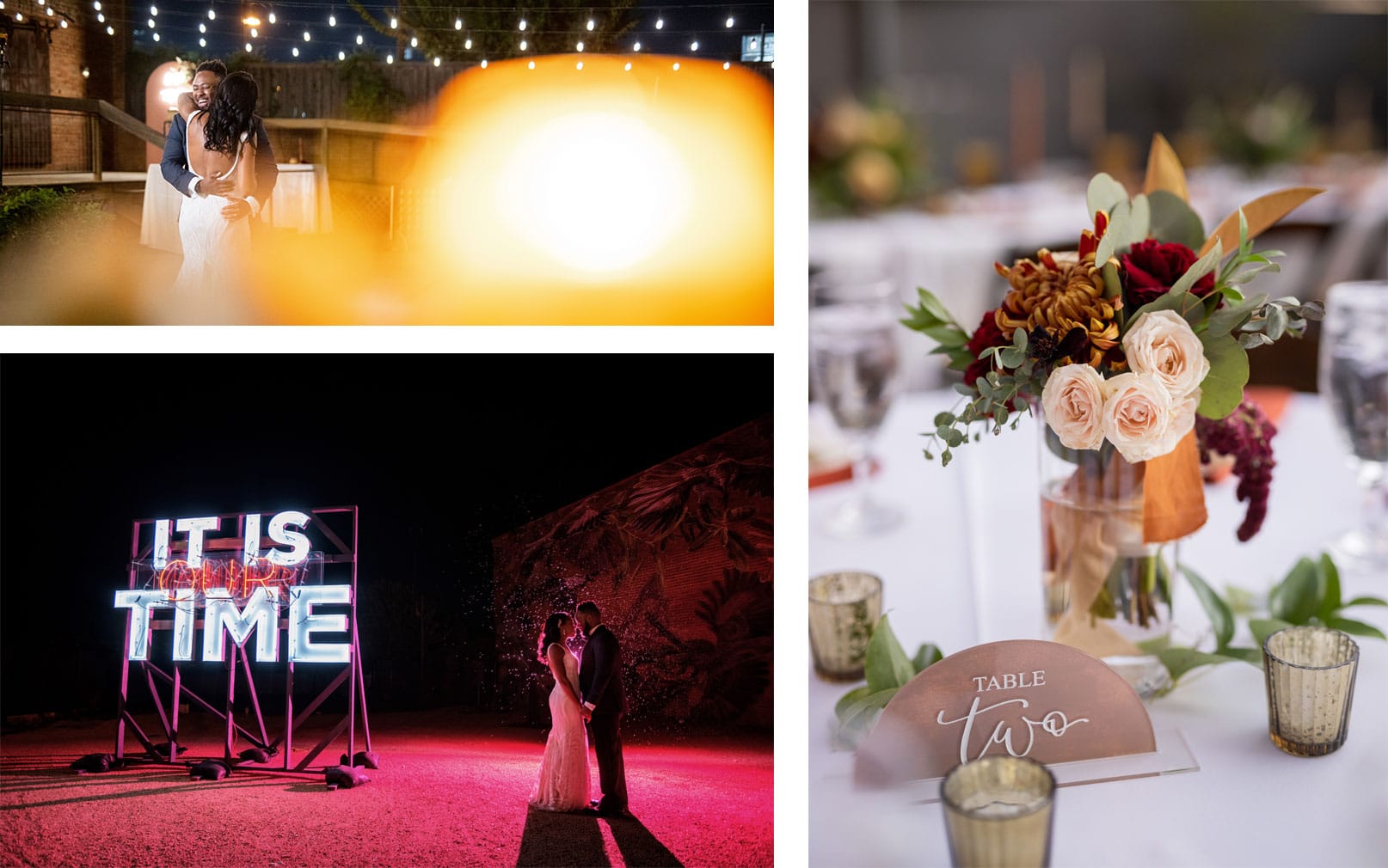 Photography: Craig Obrist Photography, Atlanta, Georgia; Venue: Artspace111, Fort Worth; Wedding coordinator: Brandi Chapman of Artspace111, Fort Worth; Florals: Posh and Prim, Fort Worth; Furniture rentals and linens: May I Serve U, Haltom City; Lounge and neon sign: The Styled Affair, Dallas; Catering: City Kitchen Catering, Houston; Wedding cake: Crumb and Kettle, Dallas; Late-night snacks: Del Campo Empanadas, Fort Worth; Drink service: HD Liquid Catering, Addison; DJ: Curated DJ, Dallas; Videography: Martin Weddings, Houston & Dallas; Photo booth: Capture Co. Events, Dallas; Invitations: Brown Fox Creative, Burleson; Other stationery: Minted; Wedding dress and veil: Lovely Bride, Dallas; Wedding dress alterations: Altered for the Altar, Dallas; Bridesmaid dresses: Bella Bridesmaids, Dallas; Groom and groomsmen attire: The Black Tux; Jeweler: Diamonds Direct, Dallas; Makeup: Jamie Dionne, Dallas; Hair: Ericka Smart, Dallas; Transportation: Alto, Dallas-Fort Worth