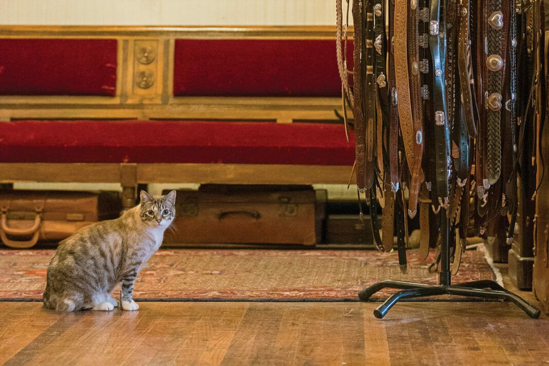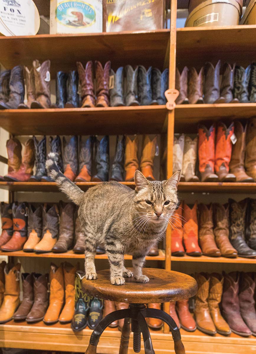 Walk into Tumbleweed Vintage Boots in Weatherford, and shop cats Biscuit and Kahlua barely acknowledge your existence. It’s not because they’re aloof. It’s because they’re typically sleeping (or catnapping). Cats do that, especially the old ones. The third, Diane Kitten, usually remains unseen and unheard, typical for a tortoiseshell feline.