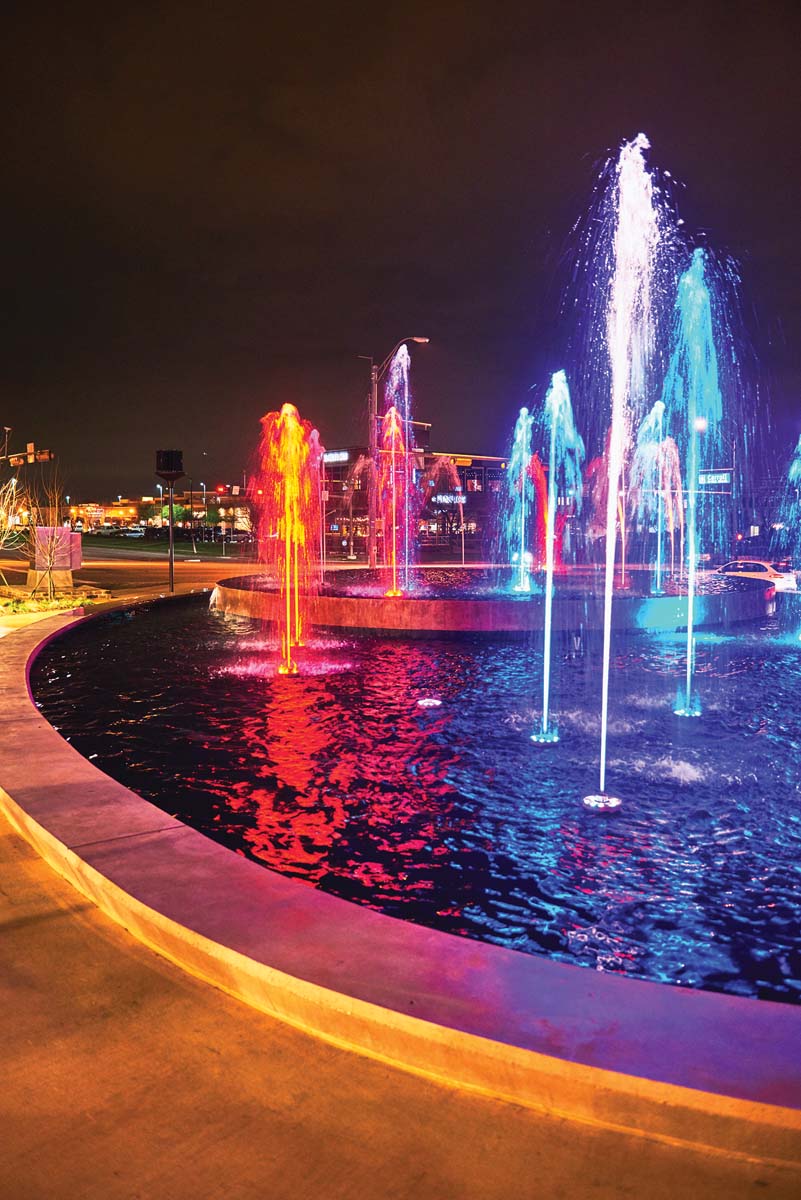 “The vision was that there would be a fountain that was a mini version of the Bellagio,” with music that would sync with dancing streams of water, Hill tells 76092, referencing Las Vegas’ most famous fountain.