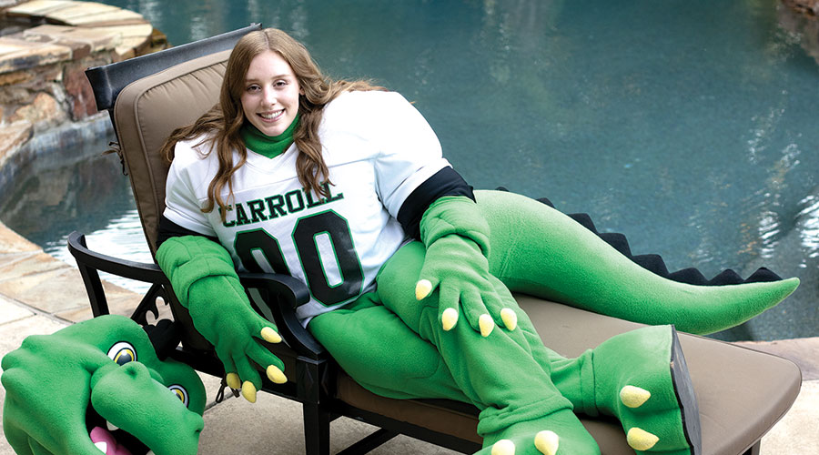 Natalie Sanders jumped at the chance to be Charlie, the mascot. Not only is she part of Carroll’s football tradition, she is part of the Southlake community.
