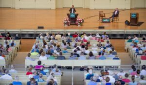 The daily morning lecture takes place in the Chautauqua Amphitheater and focuses on the week’s theme.