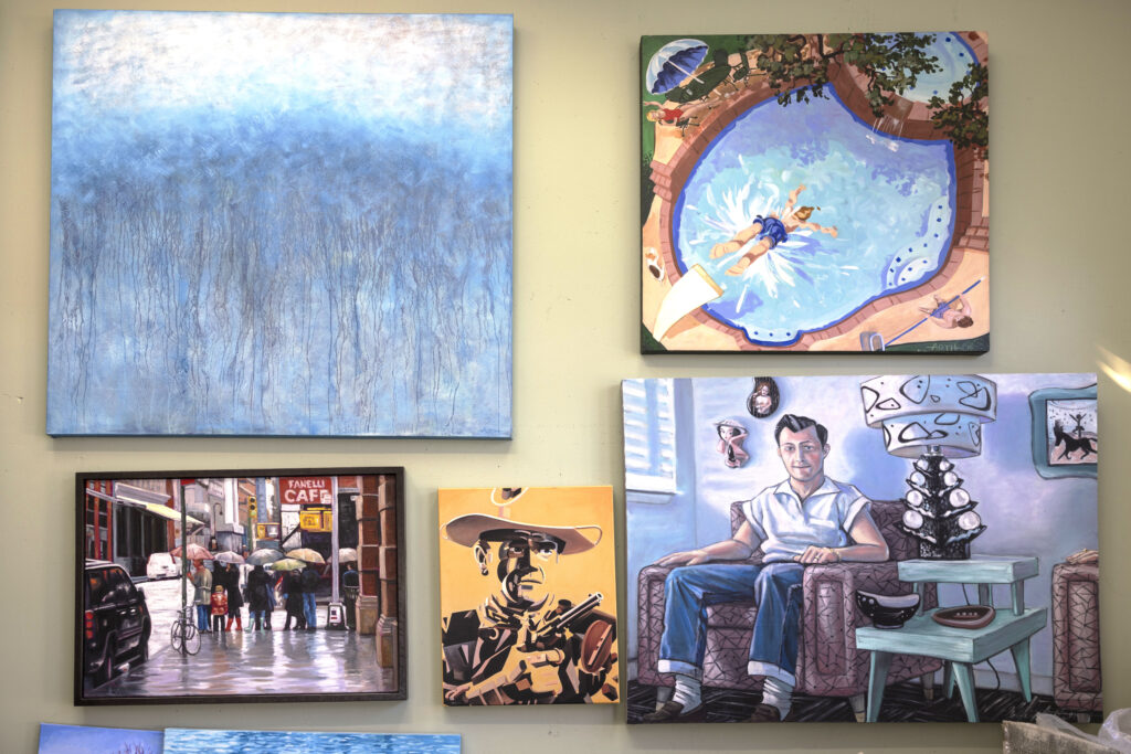 Another of Arth’s styles is what he calls “Sculptural Cubism,” a mashup of the traditional Cubism and its multiple perspectives with a “sort of two-dimensional sculpturelike painting.” Arth has used this style in generating portraits, faces of iconic people like the image of John Wayne hanging in his studio, and even dogs and cats.