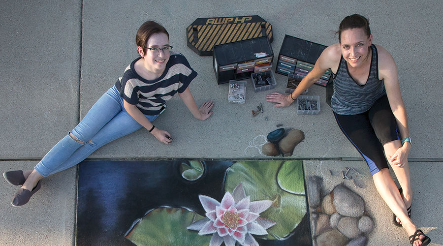 Jan’s no stranger to chalk as a medium. She has participated in local chalk-art festivals for the past five years; Olivia joined her mom for her first event last year. But Jan admits the detailed three-dimensional designs require a lot of work and thought. “Olivia has to help me with the grid systems. And you have to remember that they only look good from one angle.”