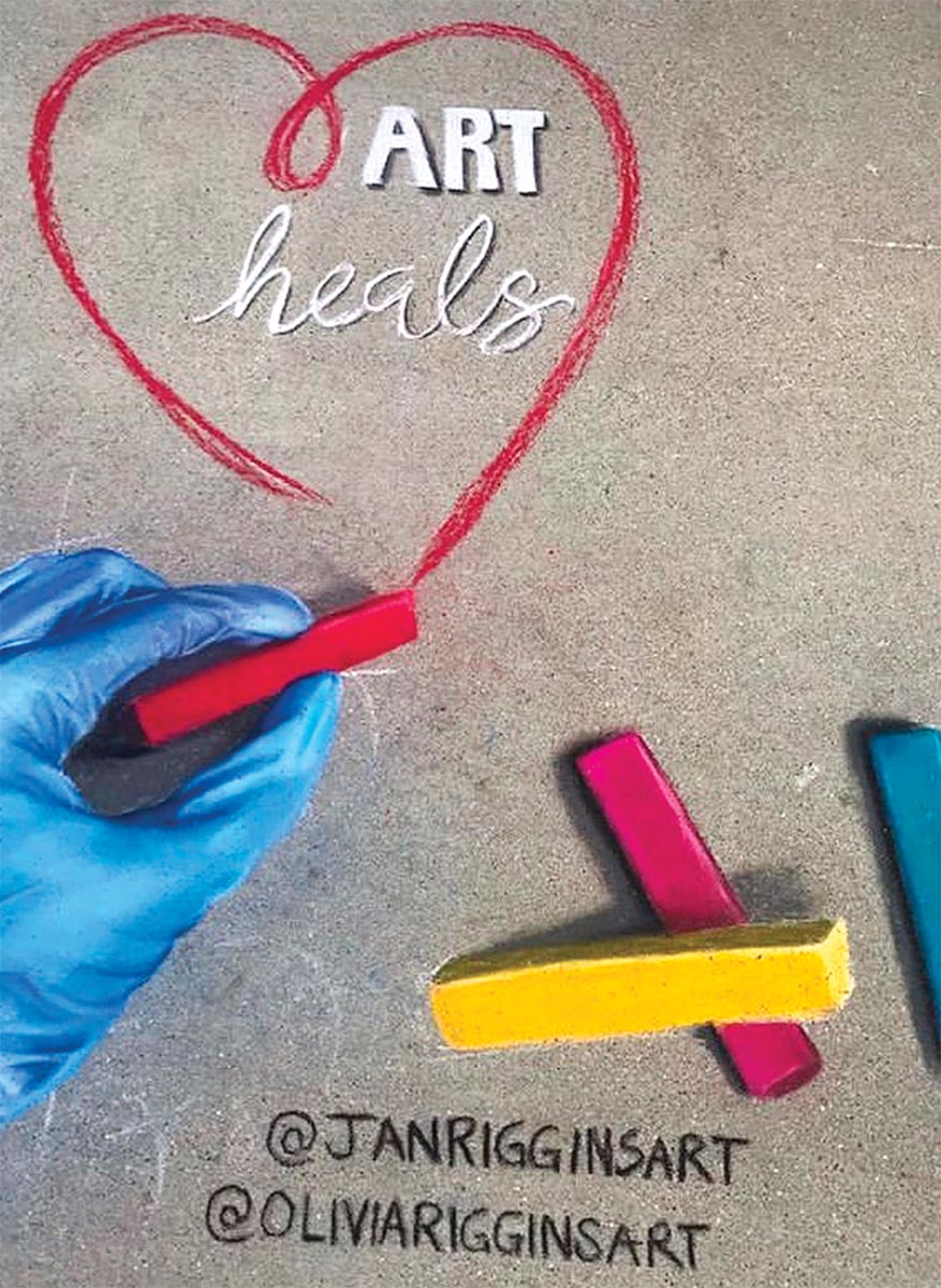 Sometimes rain washes their work away, or sometimes they hose it off to start something new. “The reason I like chalk art is the impermanence of it. It’s also great stress relief,” says Jan. “Even after an exhausting day at work, I feel better after painting.” Follow Jan at facebook.com/janrigginsart and the mom-daughter team on Instagram @janrigginsart and @oliviarigginsart.
