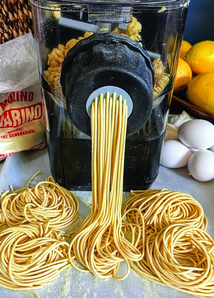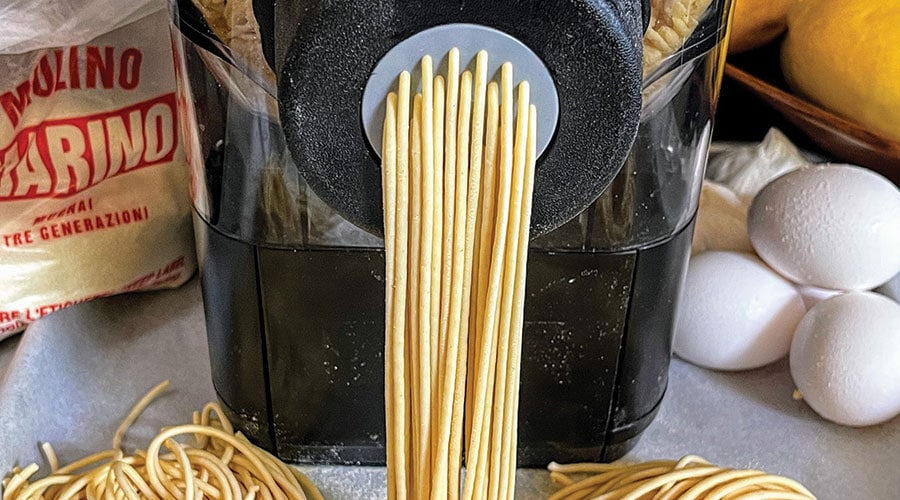 Making fresh pasta is easier than you might think. If you can assemble a few simple ingredients and press a button, an all-in-one pasta extruder can turn out a pound of chef-quality spaghetti, linguine, tagliatelle, fettuccine or penne in about a half-hour. Our current favorite is the Emeril Lagasse Pasta & Beyond, an as-seen-on-TV device that’s thoughtfully designed and easy to operate.