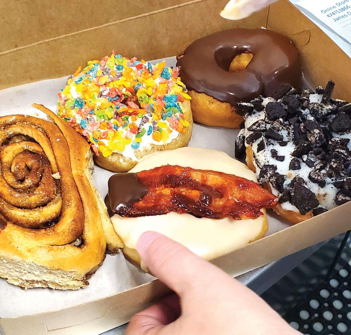 Dough Boy is best known for its made-to-order doughnuts with sweet toppings, but you also can get cinnamon rolls and a variety of savory breakfast sandwiches.