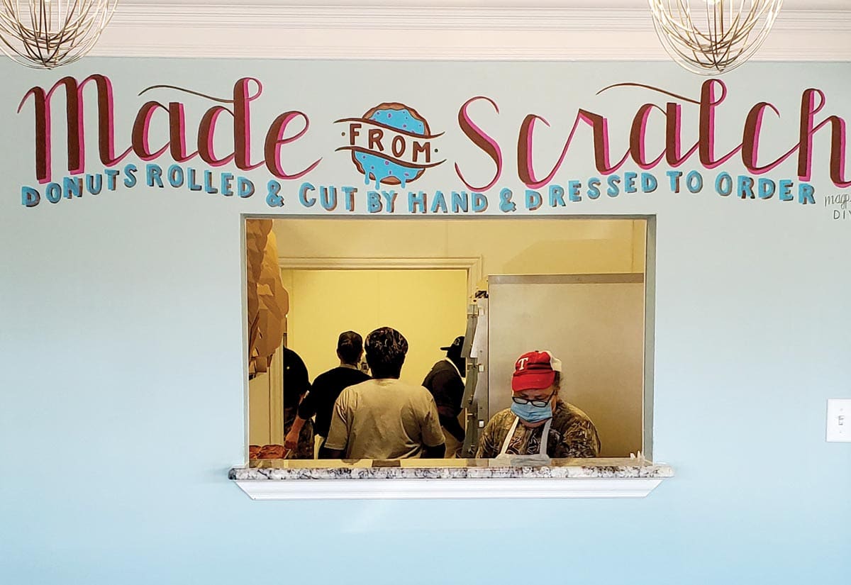 Fast-forward to the arrival of COVID-19 this past spring. But what might have been a knockout blow for some turned out to be an odd blessing in disguise for Melvin. Like others in the restaurant industry, he and his staff had to flip the switch immediately with reduced hours, curbside pickup and online ordering. Dough Boy did neighborhood pop-ups in Fort Worth and surrounding cities, offering hot coffee and preselected boxes. Using the power of social media, they’d announce locations and times just as they did in the food truck days.