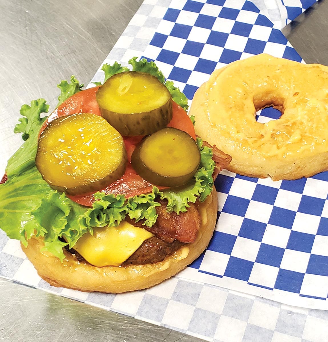 In August of 2018, Melvin announced he had found such a spot — a custom cake shop that was already set up for retail. The store was surrounded by some of Fort Worth’s most historic businesses, such as the original Kincaid’s Hamburgers and Lucile’s bistro. The bright blue interior is inviting. A glass case displays samples of the offerings: Sriracha maple bacon, pistachio lime, chocolate glaze. Fresh-squeezed orange juice and hot coffee also are available. He also expanded the menu after a year or so to include savory breakfast sandwiches and sausage rolls; seasonal flavors such as hibiscus and banana pudding gave customers even more options. Melvin was ready, but the steady business he had hoped for never really materialized.