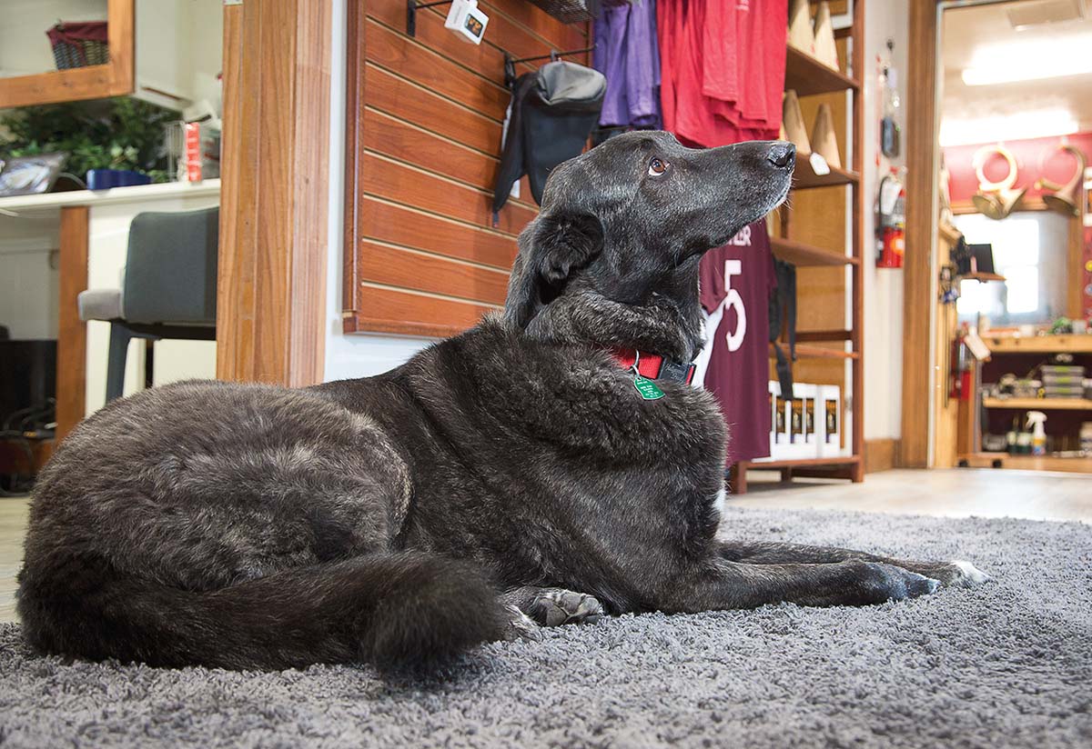 You’ll find Dennis and staffers Benjamin Allen and Christopher Reddick in the repair business along with shop dogs Chief and Rambo. There, the humans deep-clean instruments to remove mineral deposits that freeze up valves and slides, using an ultrasonic machine in additon to mechanical scrubbing. They use a torch and solder to repair joints that have come apart. And they rebuild valves, which can wear out over time, like in the Geyer Schmidt horns that are close to