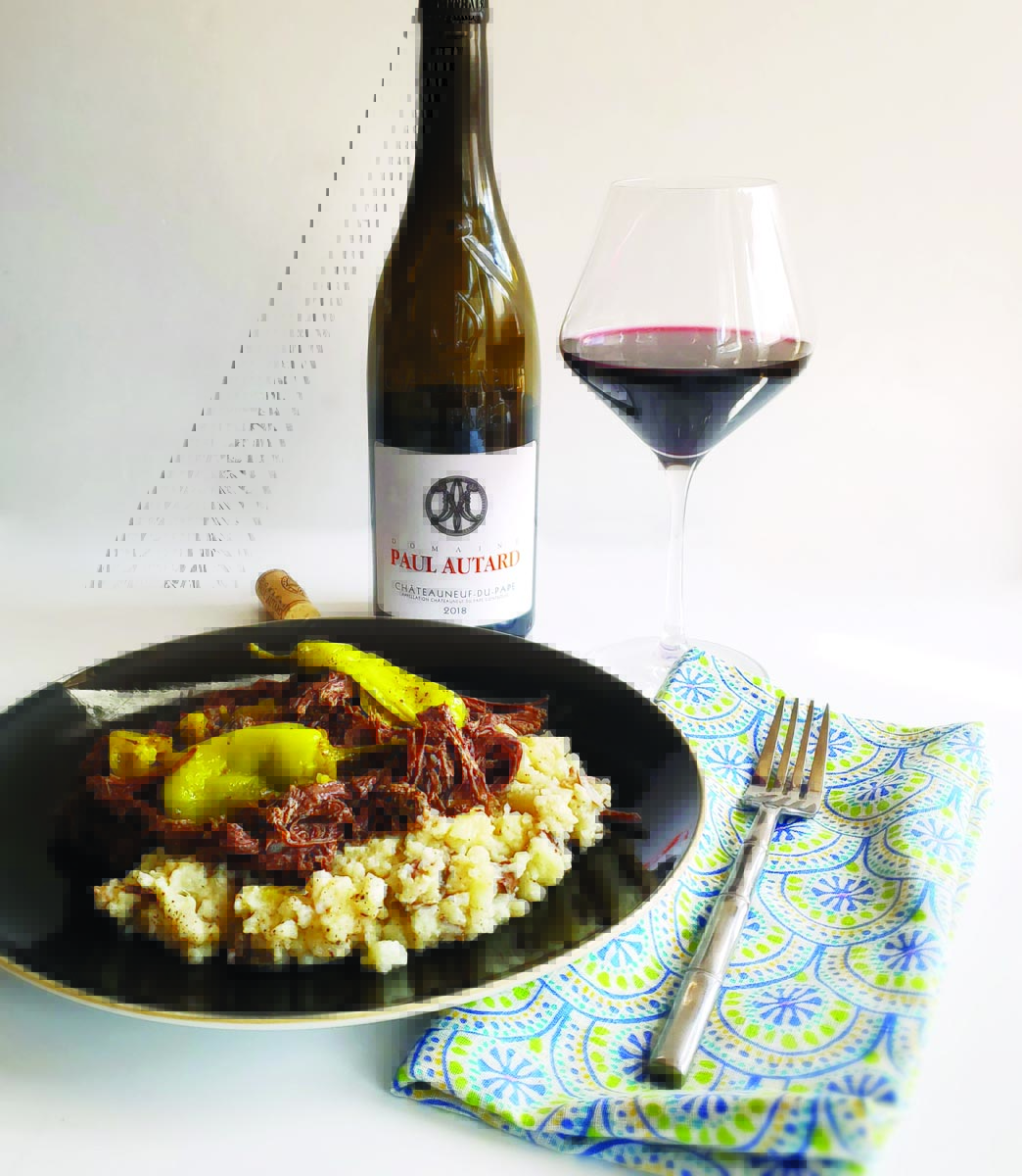 This complex Rhône wine is made of grenache, syrah and mourvèdre and has flavors of red fruits, baking spices, rosemary and vanilla, all of which pair well with the herbal notes found in the ranch dressing. The black pepper notes complement the piquancy of the pepperoncini peppers. $50; find it at Central Market locations or through your favorite wine merchant.