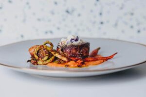 I base the menus from seasonal and travel experiences, which takes guests’ palates on an adventure every time they dine with us! April’s menu was French inspired, as I ate my way through France for two weeks. The menu in May was inspired by “the essence of spring” featuring ingredients that are only in season for the perfect spring months. – Baxter