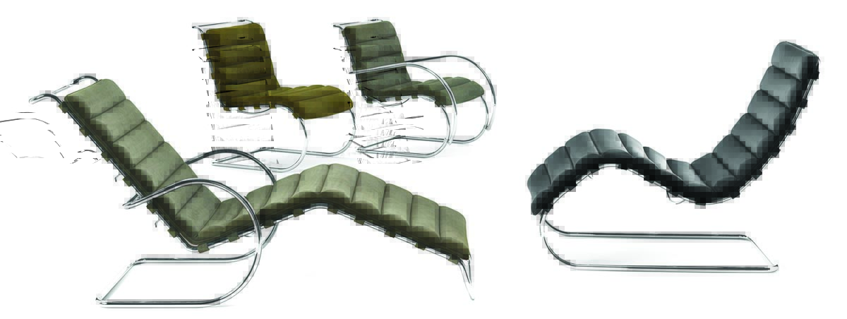 The origin of the bent-steel, magically cantilevered chair is debatable, but it is Ludwig Mies van der Rohe who is remembered for making the tubular steel designs irresistibly beautiful. The MR Collection from Knoll showcases the designer’s 1920s chaise loungers and chairs (with and without arms) with durable and well-padded leather upholstery. Available in Volo, Sabrina and water-resistant Acqua leather finishes in 26 colors. Chairs from $4,383; loungers from $5,337. knoll.com