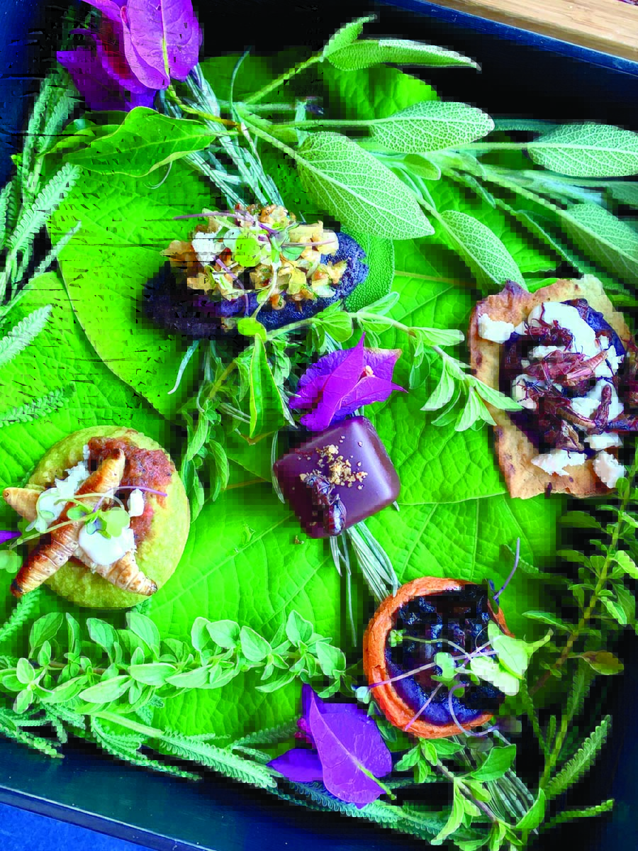 The natural presentation is only fitting, because my appetizers are grasshoppers, ant larvae and worms. It’s the moment of truth: Am I adventurous?