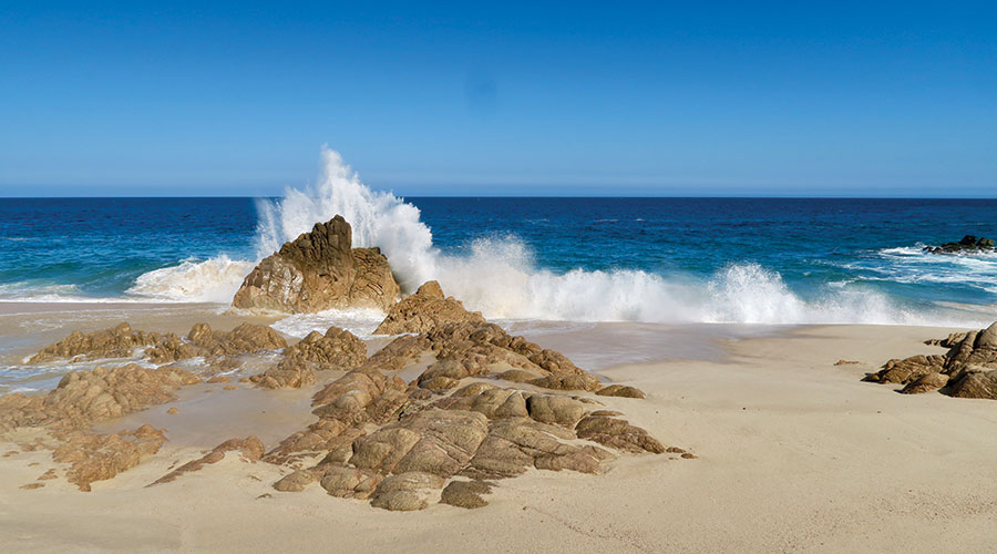 The confluence of two massive bodies of water produces spectacular crashing waves but few swimmable beaches. Luckily, one of those is steps away from my suite. Golden sand cradles the entire resort, which unfolds in layers down a gentle cliff. The gemstone blues of the water are nothing short of thrilling in shades of turquoise, sapphire and aquamarine. It’s a treasure trove of sea life; during whale season, you can sail alongside the magnificent creatures or simply watch them pass by the coast from your lounge chair. Los Cabos also is a playground for sports adventures, from deep-sea fishing to scuba diving.