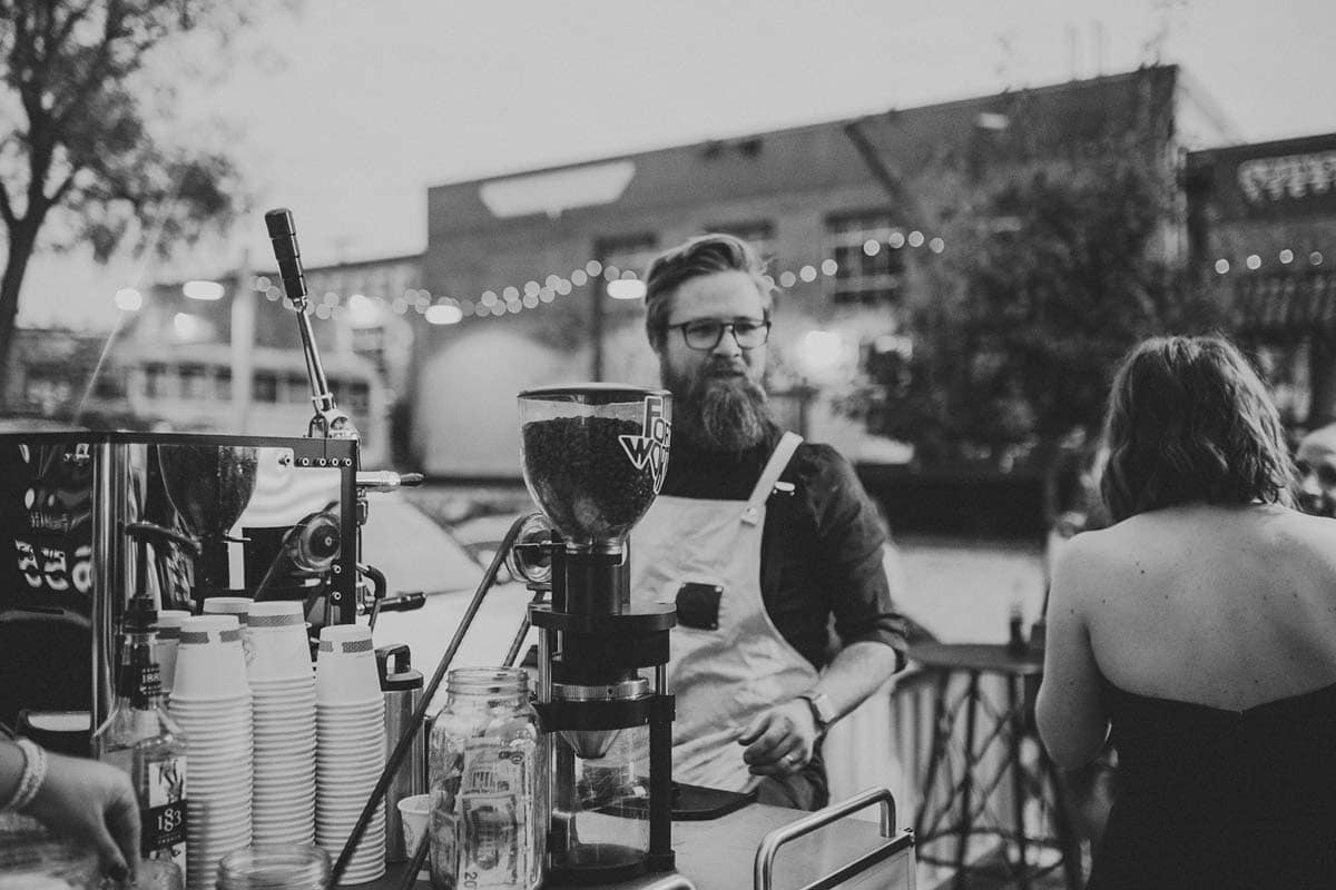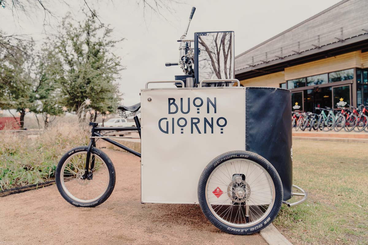 Buon Giorno Coffee Trike Stuart Reed, owner and operator of the Buon Giorno Coffee Trike, calls himself the “Pedalista Barista.” The coffee trike, an associate business of the popular coffeehouse and roaster for which it’s named, boasts a pedal-grinder that produces, without electricity or batteries, the finely ground stuff needed to turn out espresso drinks. “People have been very impressed at the depth of my offerings despite the small footprint. My specialty is not only espresso, but machiatto, cappuccino, latte, chai tea latte, hot dark chocolate and everything in between,” says Reed. “A lot of folks book the trike during the cocktail hour, around the cake cutting or around the send-off, and oftentimes during the entire reception in order to keep the energy up and people having a good time.” Reed enjoys the reactions his unusual contraption elicits. “Coffee just makes people happy, and especially doing it in such a theatrical way,” he says. “It’s the perfect combination of my three biggest passions — coffee, bikes and sustainability.” Call 817-995-5792 or visit bgtrike.net.