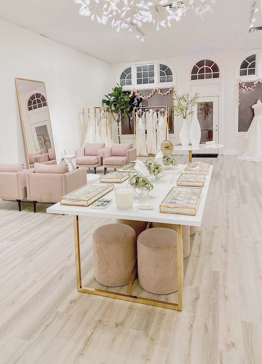 Another bridal shop now fills the space of recently shuttered De Ma Fille, and inside, a lot has changed. Owner Cecilia Chu remodeled the space to reflect a contemporary, urban aesthetic, installing light gray flooring and gold fixtures, painting the walls white and warming it up with blush curtains and accent chairs. With the fresh new backdrop in place, she filled the racks with gowns from more than half a dozen labels, including Hayley Paige and Pronovias, and opened the doors in October 2019. Gowns can be ordered up to size 34 in some brands; prices start around $1,100. In addition to wedding dresses, Chu also stocks jewelry, veils and flower girl dresses.