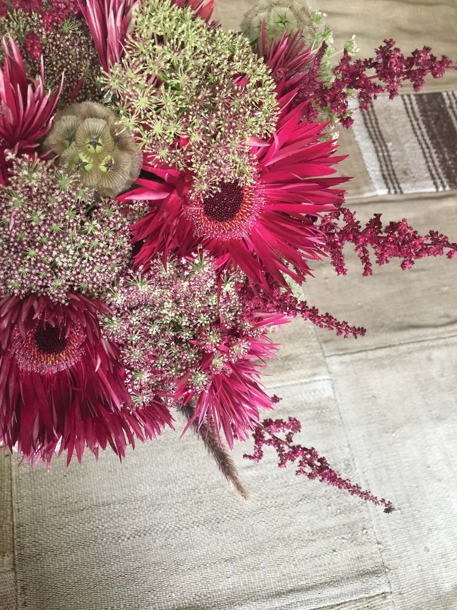 The Fox and Flower Stephanie Bergmann is a longtime occupational therapist, but she now has a second profession — floral design. Being an active member of the Fort Worth Garden Club led her to launch her own flower business in July 2018. Bergmann was visiting local businesses asking for donations for the club’s juried flower show prizes, when, at Fixe, she was asked if she could do flowers for the restaurant. She did, they loved it, and The Fox and Flower — named for her mixed-breed rescue dog, who has an uncanny resemblance to a fox — was launched. Bergmann’s client base grew from there, with requests from more restaurants and retailers, and also for proms and weddings. The pictured bouquet was done for a daring bride. Red chrysanthemums, chocolate Queen Anne’s lace, scabiosa pods, spiky red astilbe and barley made for a stunning and long-lasting bouquet. Bergmann typically orders flowers but occasionally draws from her own backyard garden, too. She teaches a “Supermarket Bouquet Hack” flower arranging class 1-3 p.m. July 20 at BRIT; sign up at brit.org and bring your own vase. For more information about The Fox and Flower, call 817-797-7898, visit thefoxandflowers.com or find the business on Instagram.