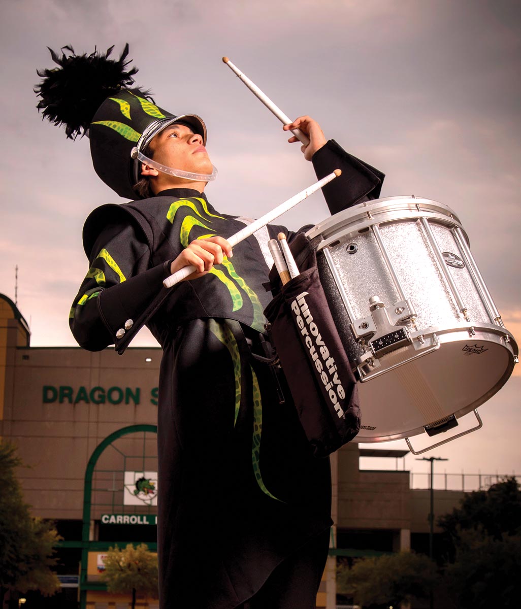 “I stayed on and kept practicing and eventually made it up to here,” Capati says. “Through band, I really have just learned to be committed. You’re a part of a group where we all depend on each other. If one person doesn’t play the right note or doesn’t hit their spot on the field, it’s going to look wrong or sound wrong. So even if it’s hot, even if your drum or instrument is heavy, you have to become mentally tough and commit yourself to the show and to everybody else.”