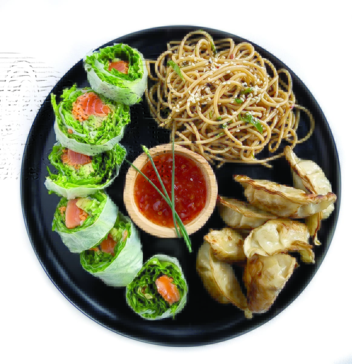 Food Frozen gyoza are available at all major grocers; cold noodles and salmon rolls, Eatzi’s