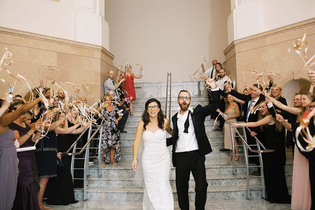 In a day filled with special moments, a few stand out. Tunde’s family, of Nigerian descent, wore traditional African garments to the wedding. Guests danced to the music of DJ Bowtie, and the museum glowed from its signature reflecting pond. And how did they leave the reception? In the bride’s Mercedes, naturally.