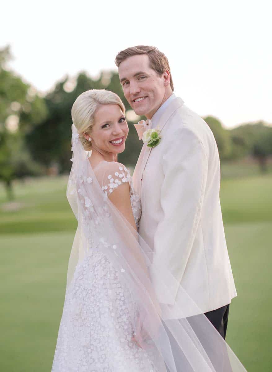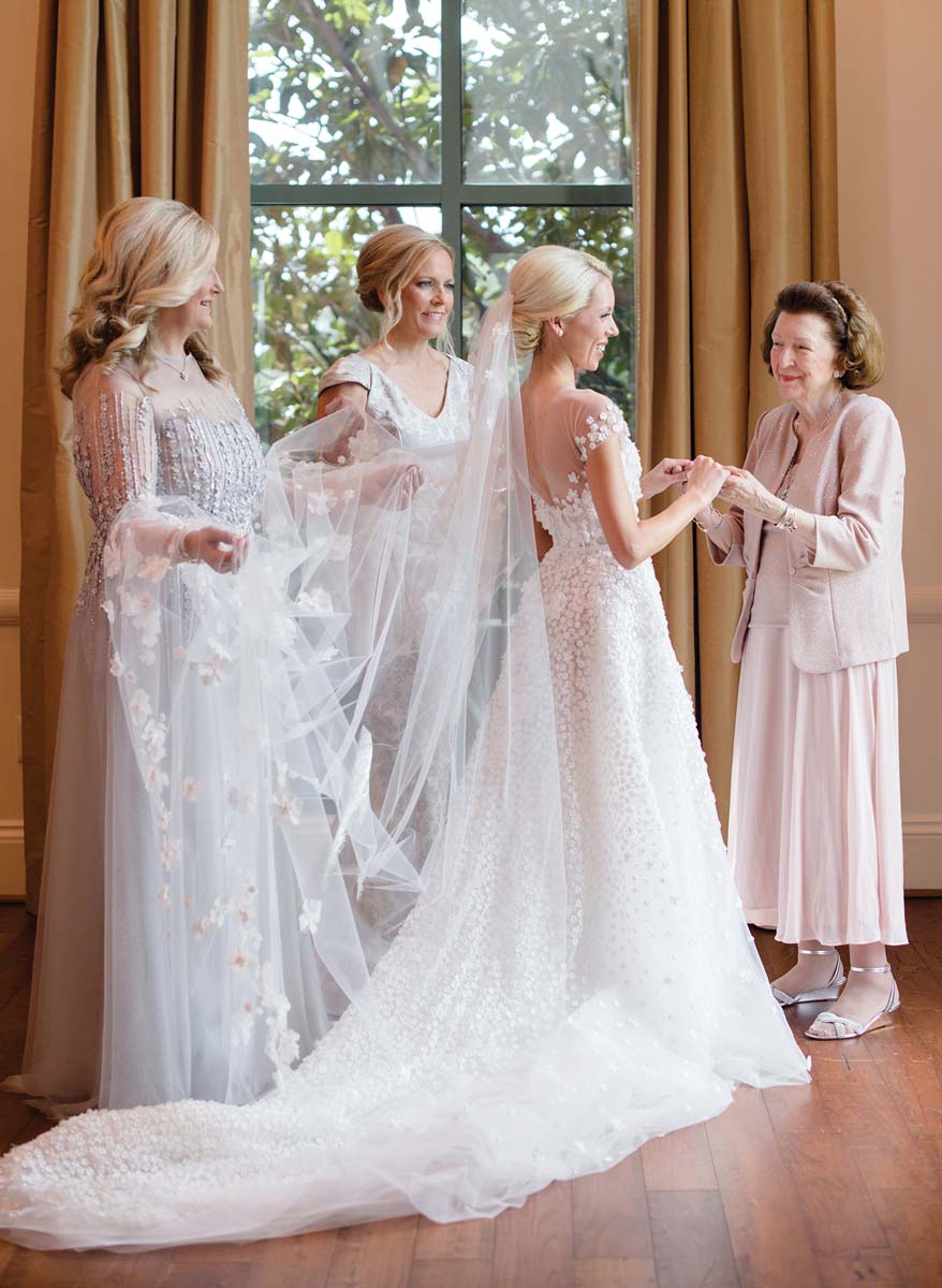 “I’ve dreamt of picking out a wedding dress since I was a really little girl, but I’d never tried on dresses until I went during the summer we got engaged,” says Brooke. In one day, she donned 100 gowns in Dallas, shopping everywhere from Warren Barrón Bridal to Carolina Herrera. On a trip home to Houston months later, she chose a Mira Zwillinger gown the company flew in for her to see.
