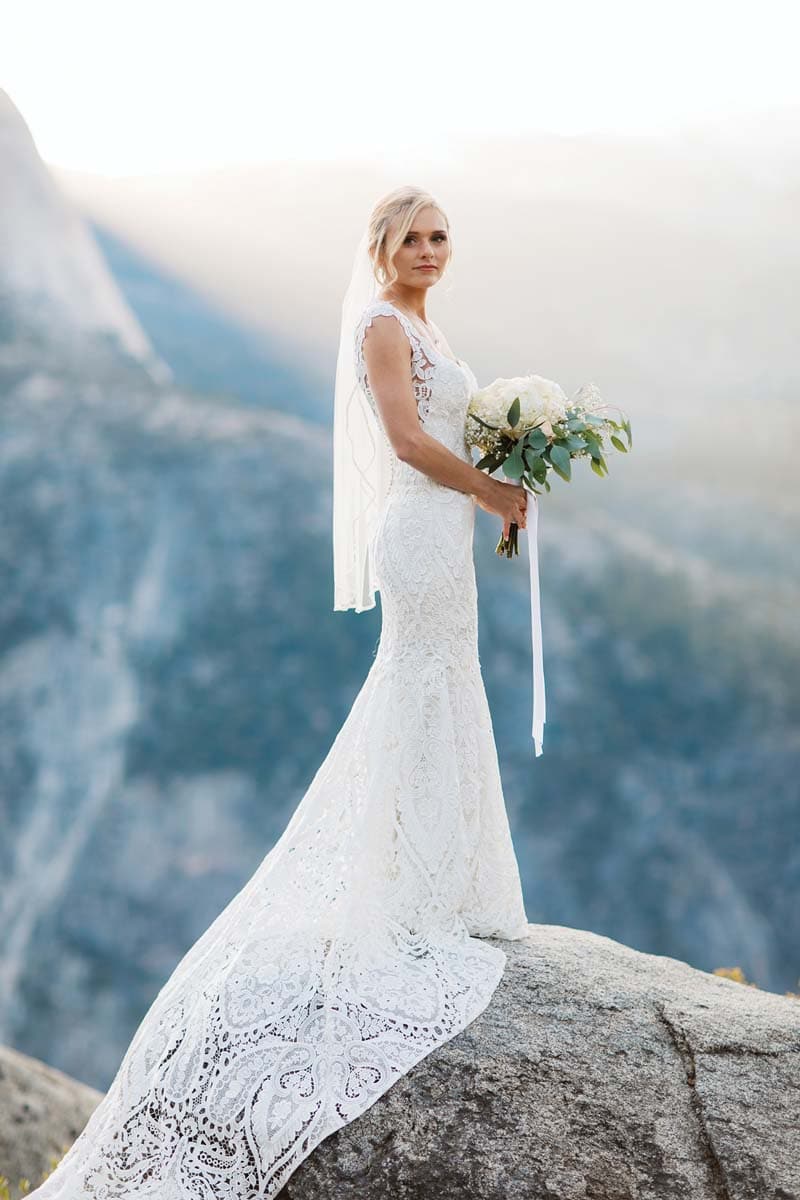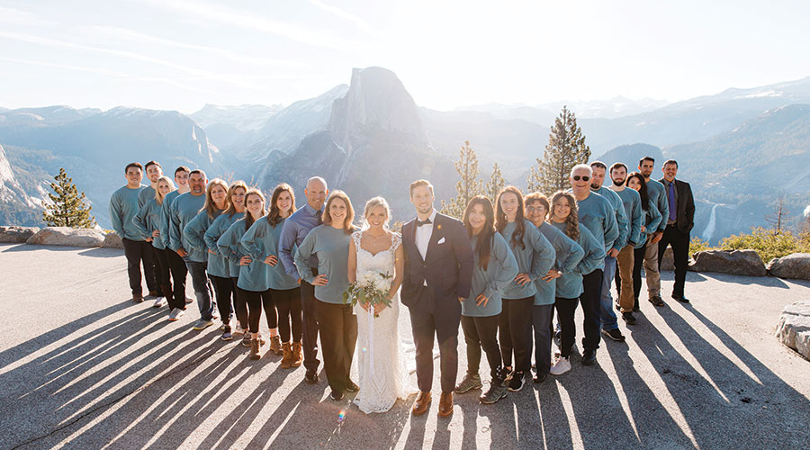 Ceremony Glacier Point, Yosemite National Park, nps.gov/yose | Reception and lodging The Redwoods in Yosemite, redwoodsinyosemite.com | Photographer Colby & Jess, colbyandjess.com | Videographer Jacob Phillips, on Instagram @_jacobphillips_ | Flowers Trader Joe’s, traderjoes.com | Invitations Etsy, etsy.com | Wedding dress Watters from Sunday’s Bridal, Richland Hills, sundaysbridal.com | Groom’s attire Suitsupply, Dallas, us.suitsupply.com | Caterer The Smokin’ Burrito, Fresno, California, thesmokinburrito.com | Cake Sweet Dreams Wedding Cakes & Flowers, Oakhurst, California, sweetdreamscakery.com