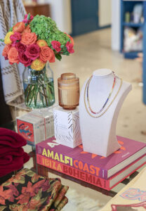 They have partnerships with local artists and interior designers, which enhance the aesthetic of the store. Voxland and Drumm tapped Candice McDonald of Harper Hill Designs to create the perfect environment at Elle Maxine. McDonald sourced vintage finds and other colorful home accessories for shoppers to peruse and even purchase. The result is a classic, grand millennial aesthetic with bright patterns and colors.
