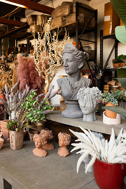 “Our number one seller by far is snake plants or the mother-in-law tongues. They’re super easy and will grow in bright light or low light,” McCoy says. “We also sell a lot of ficus tree varieties like fiddle leaf fig trees.”