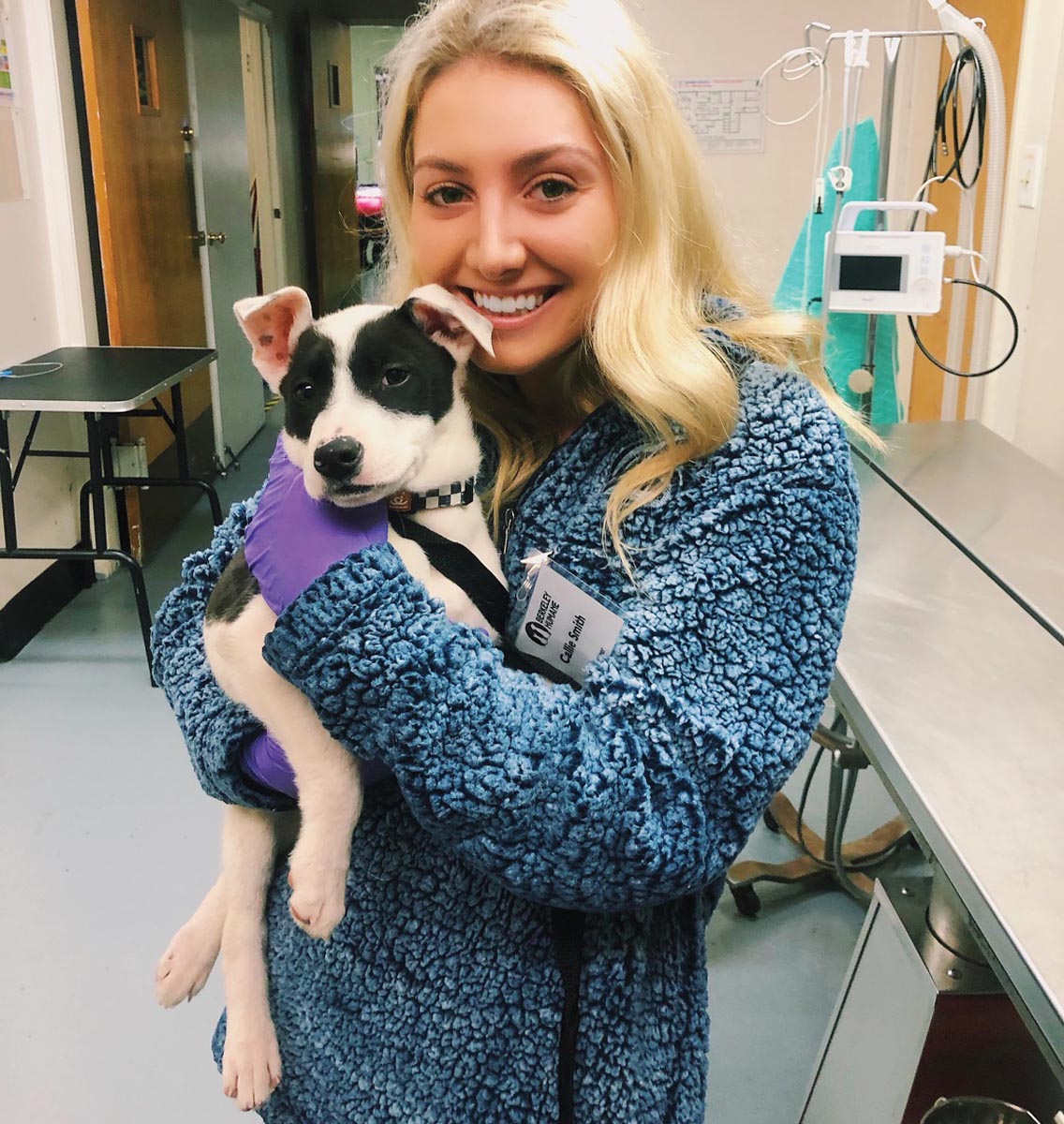 Smith also volunteered at the Berkeley-East Bay Humane Society. “I started out as a dog walker and also did some fostering. I got involved with the hospital for six to 10 hours a week.“ Fieldwork in South Africa after her first year of college gave her a chance to work with native species and cemented her love of working with animals.
