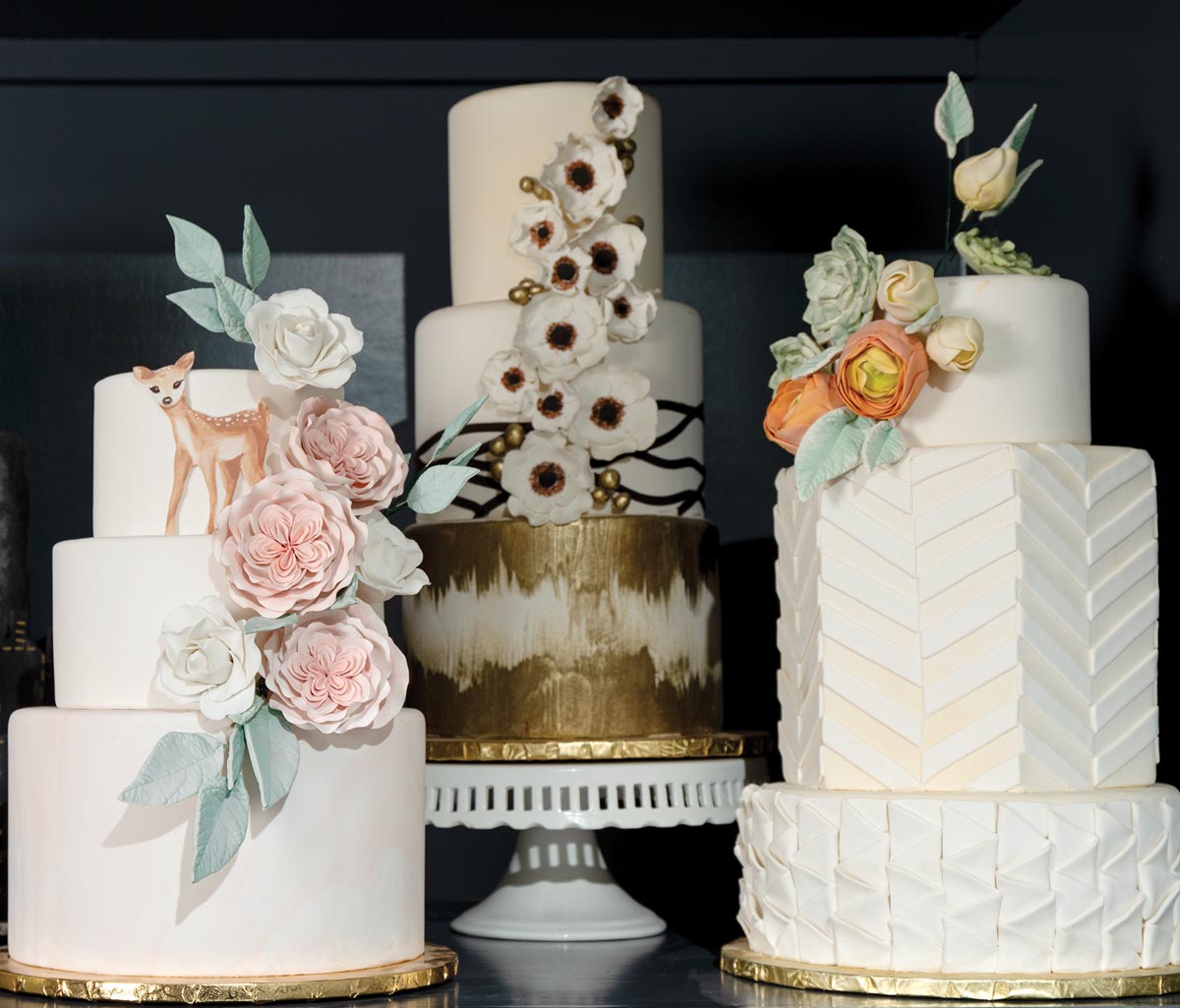 At her Grapevine bakery, Megan aims to please her customers with artfully detailed wedding cakes and ornately sculptured baked goods. Grooms cakes made to look like stadiums are popular. And even odd requests are accommodated, such as a firefighter holding a Texas flag while riding a dinosaur. Whatever the ask, she’s up to the job. She admits that she is partial to the frilly ones.