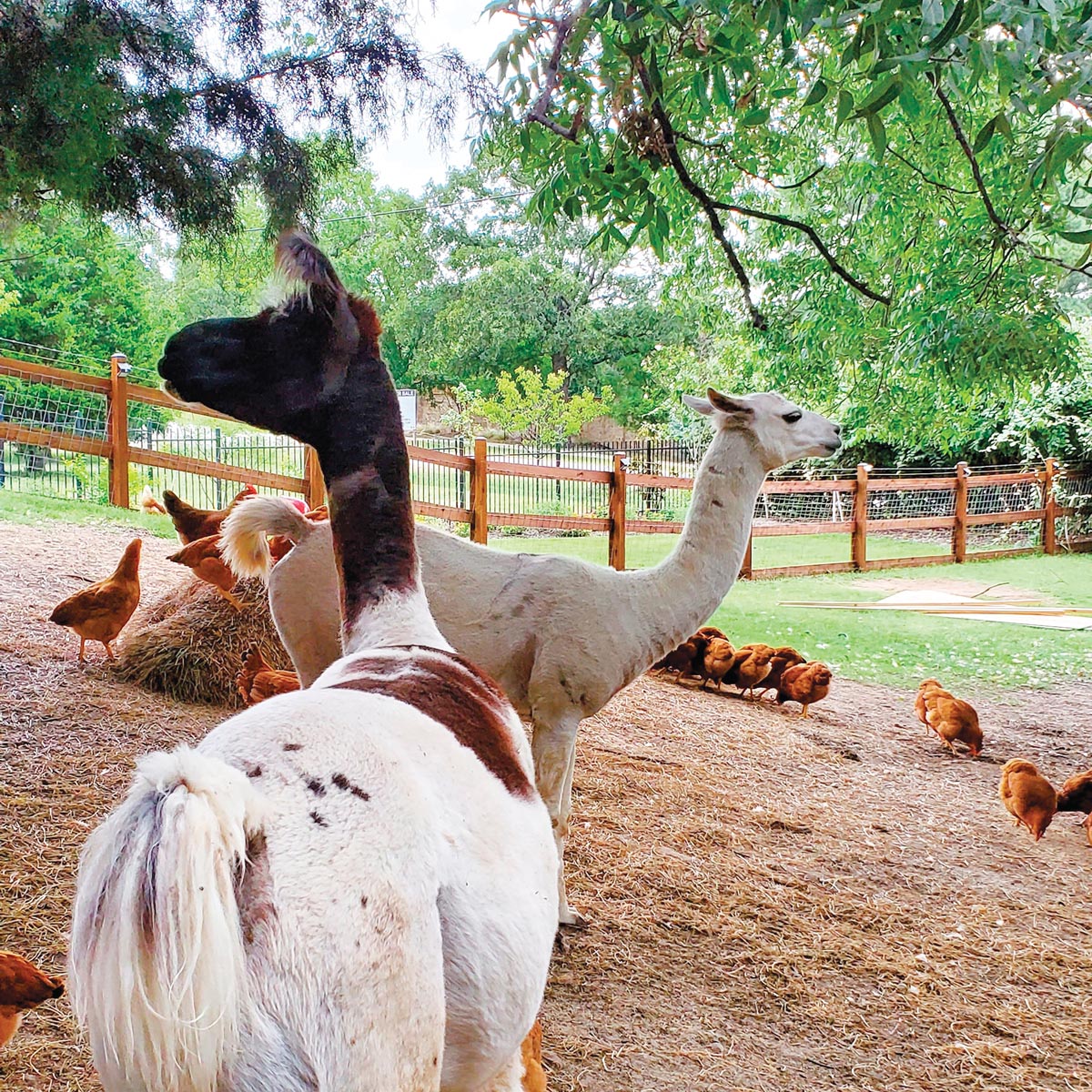 “It was just something I always wanted to do. I didn’t think I knew enough, but a year and a half ago, I decided to just do it. I have 90 chickens and two llamas to protect them from coyotes. It’s fun and really very easy.” While baby chicks have a temporary spot near the house, the chickens — and one rooster — roam freely in a fenced-in area under shade trees. The llamas are allowed out to wade in a large pond on the property.