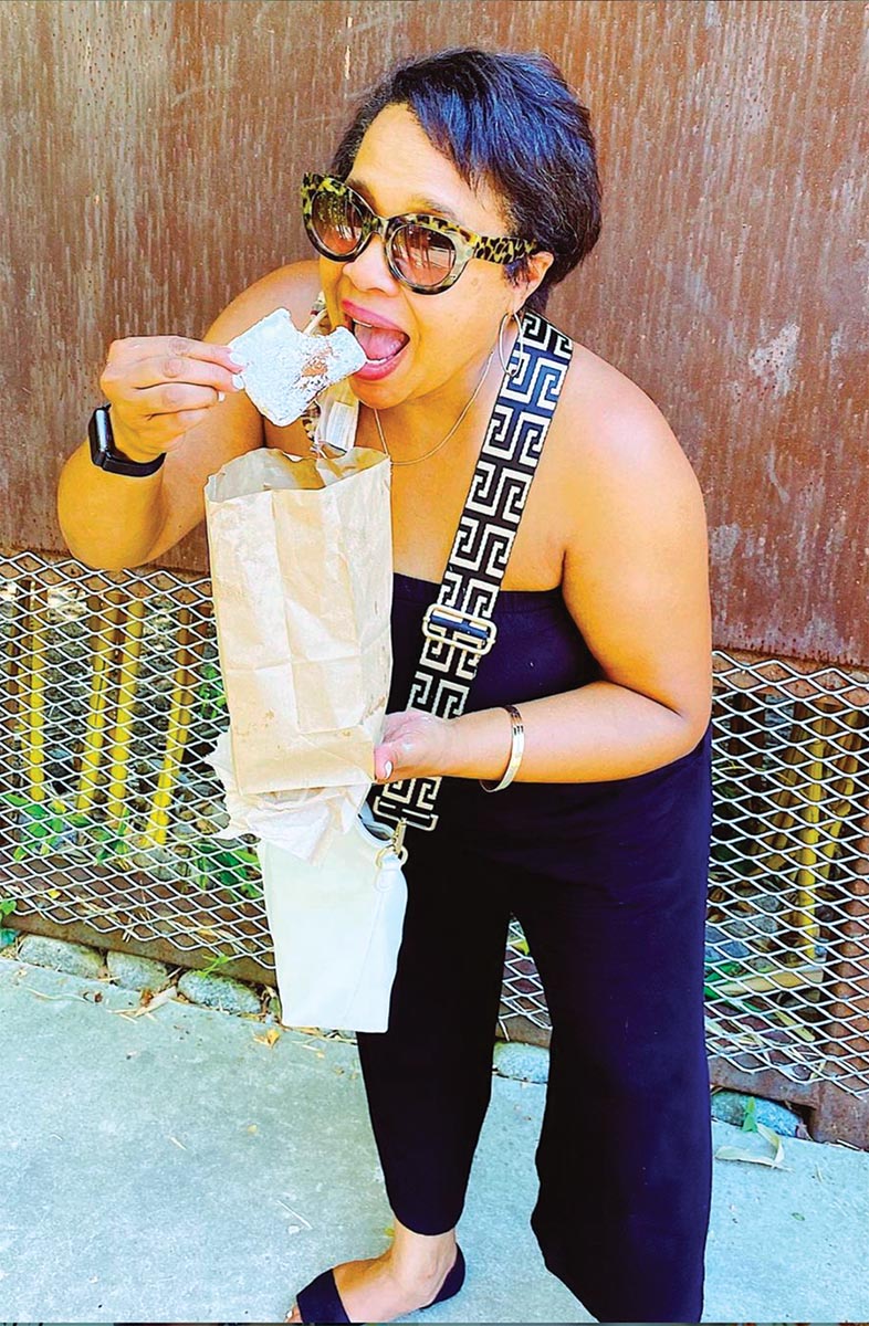 Her photographs of pizza, barbecue and seafood make us want to get in the car immediately and try out her restaurant finds. Instead of carefully composed selfies, Dendy’s photos of herself include one of her taking a big bite of hot beignets, trying to keep the powdered sugar off her black jumpsuit. Anyone who’s eaten those pillows of fried dough can relate. There’s another one of her carrying a massive tray of barbecue. Her smile says, “I’m going to eat all of this.” Again, we’ve all been there.