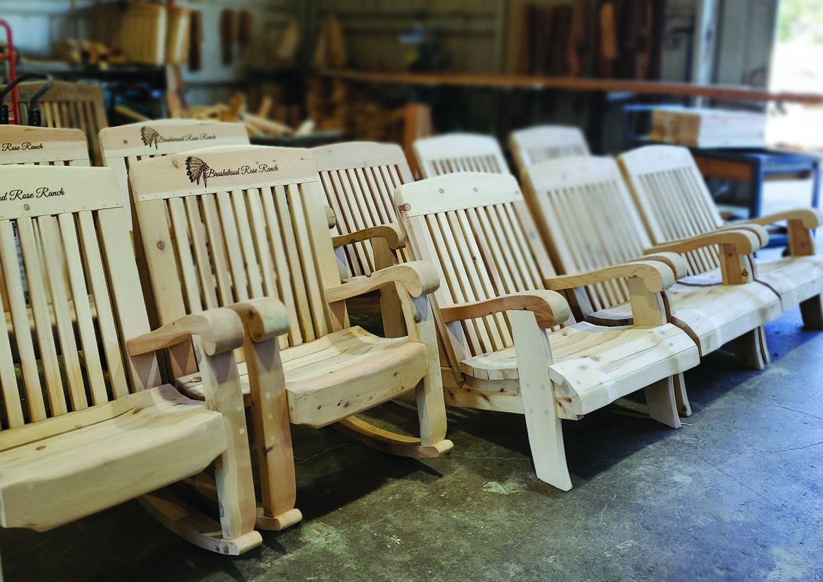 Eight years ago, Smith sat in his first oversize cedar rocking chair at Rough Creek Lodge & Resort in Glen Rose. He researched the maker — a husband-and-wife team working out of a cozy rock building in Cresson just outside of Granbury — and eventually bought the company. Smith’s career has taken him from baseball diamonds (he played in the Texas Rangers’ minor league system) to retail and manufacturing (he was an executive with Williamson-Dickie in Fort Worth), and he was jazzed to switch directions yet again.
