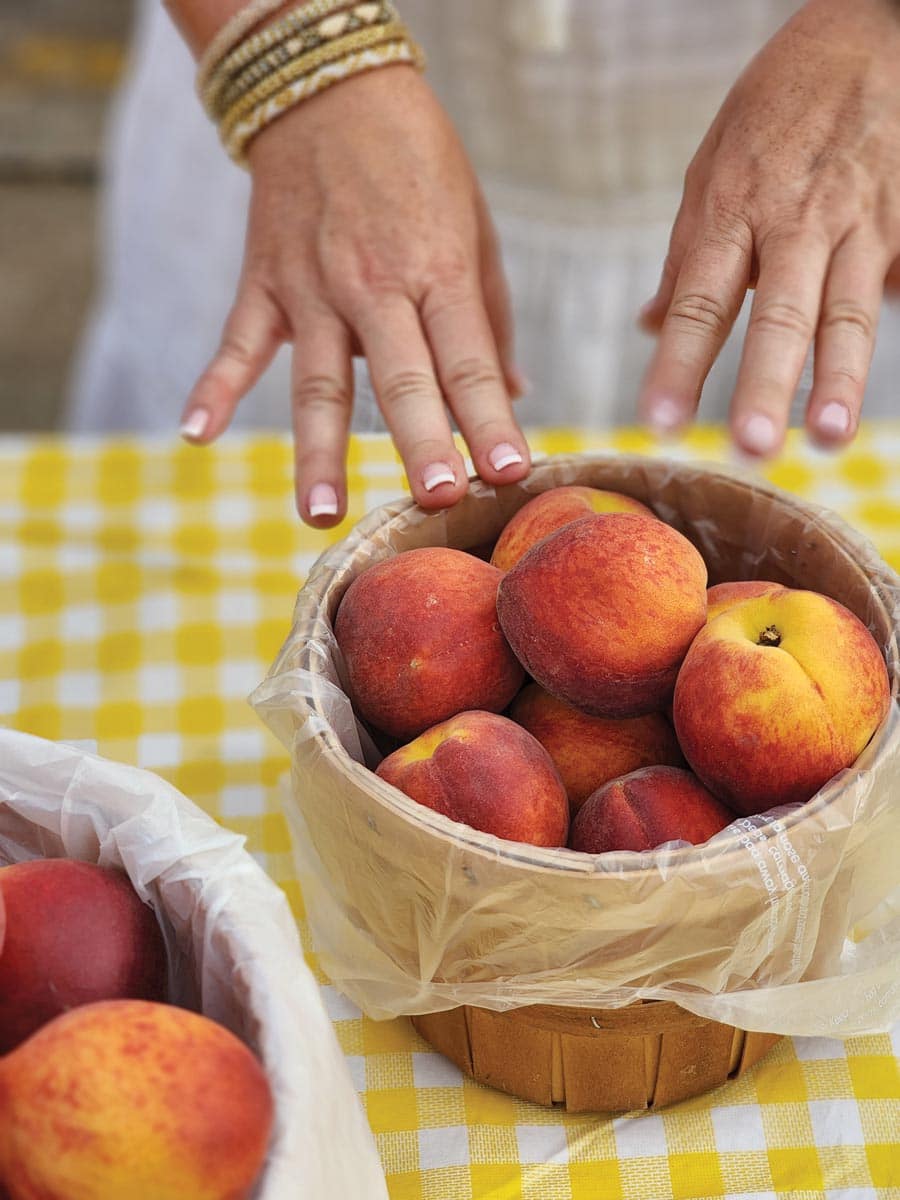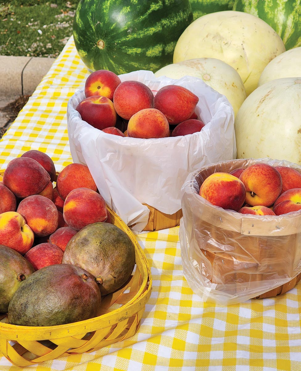 They work quickly and efficiently, stopping now and then to take in the aroma of the East Texas peaches as they unload them and bag them for sale. Customers already are pulling up to the parking lot of the Ol’ South Pancake House on University Drive. Shannon talks a bit about where the peaches came from, the differences among certain varieties and what she looks for in a perfect peach. “These are ripe and ready to eat,” she says to one couple. Sales are made and peaches restocked.