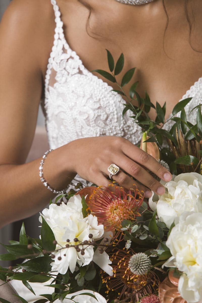 Engagement ring and diamond bracelets from BACHENDORF’S.