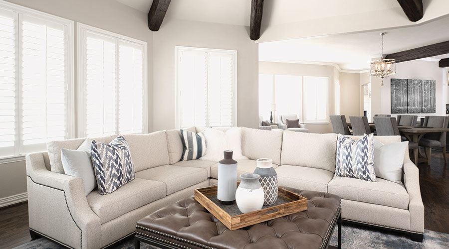 In line with the airier, more casual feel of the redesign, Gee helped Rivas to trade out heavy traditional furniture for comfortable, streamlined seating in the family room. A sectional upholstered in a cream Crypton-blend fabric fits the octagonal room perfectly and is ample for family and friends. Rivas also wanted a recliner, but not one that looked like a recliner. The request was realized in a cream-colored clean-lined chair with a row of button tufting. It is paired with baskets filled with throw blankets that encourage cozy lounging and reading.