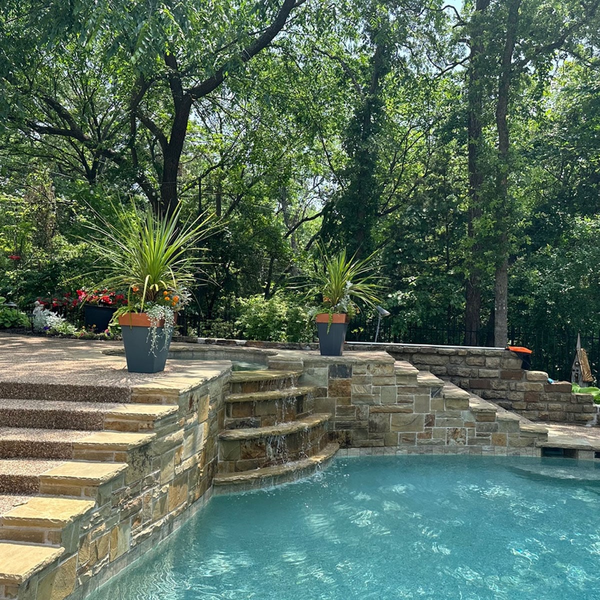 Layered gardens were planted at the home of Linda and Pete Frederick, who live at 1345 Woodbrook Court, with a mix of sun and shade. The couple accented their home with rich landscaping, integrating a swimming pool and year-round landscape color.
