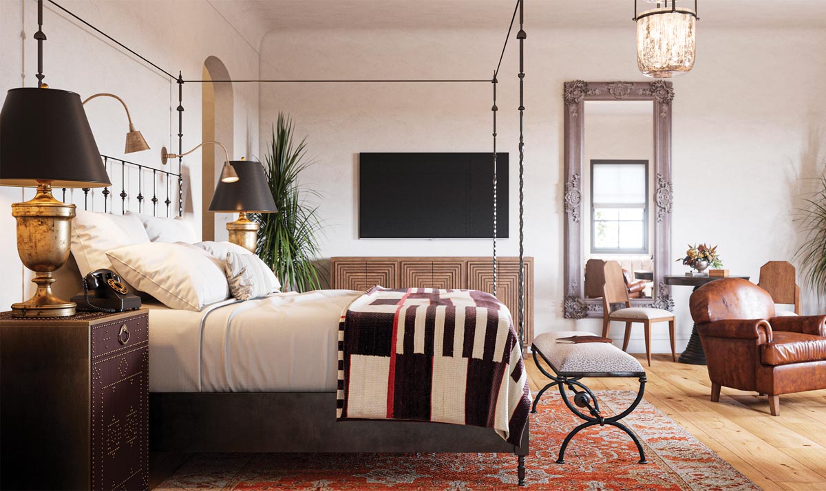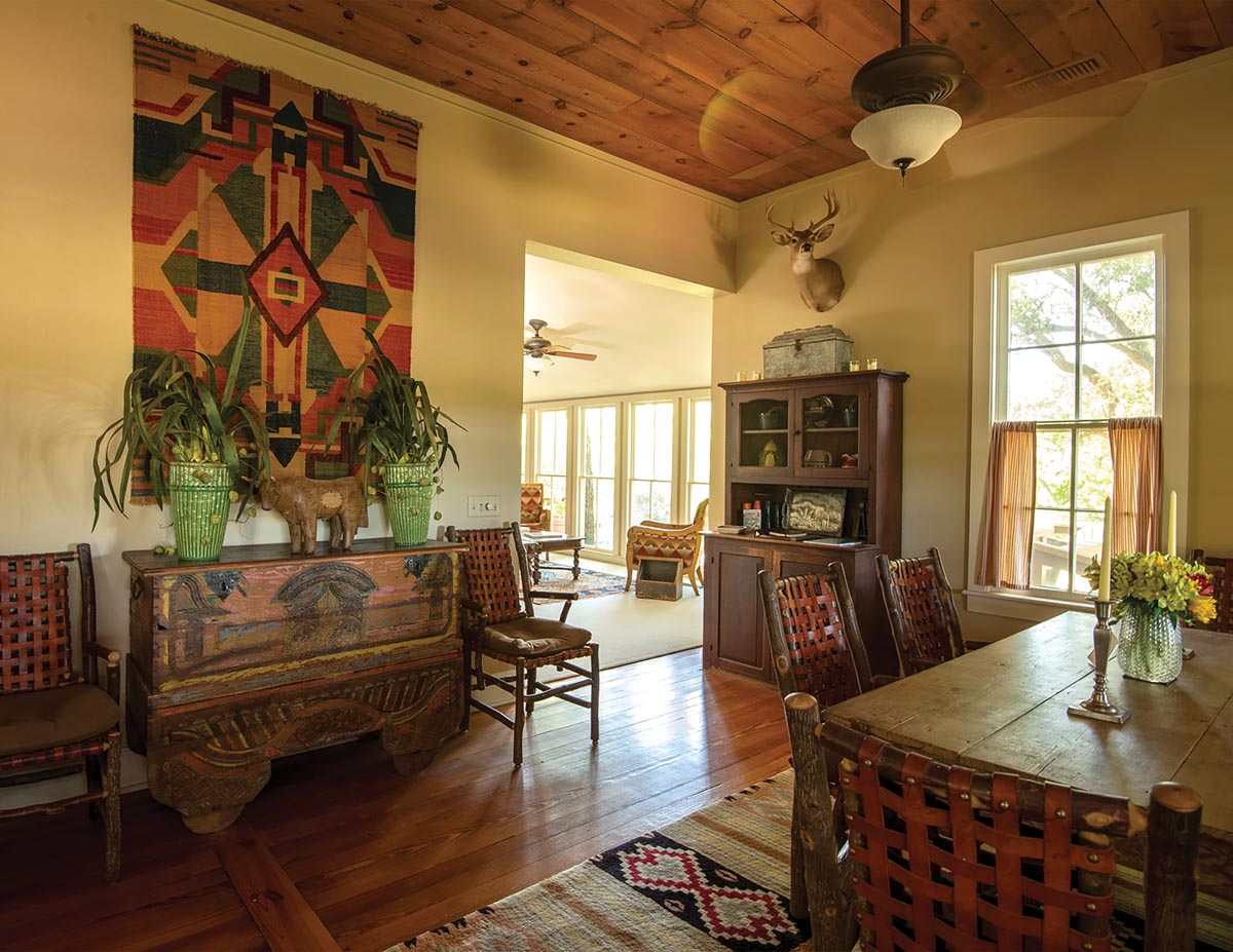 San Francisco-based designer Ken Fulk oversaw the interiors, mixing vintage and custom pieces. Fulk shopped Texas antiques shows — including those at Round Top — and estate sales to achieve a refined mix of pieces from midcentury Italy and 1920s Spain.