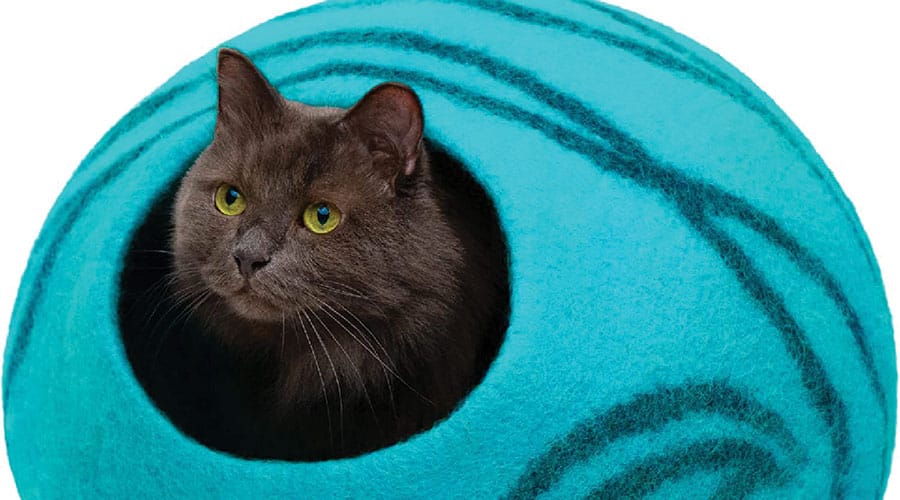 Give your feline a comfy place to hide and sleep with a Meowfia felt cat bed cave. They’re made of durable merino wool and are spacious enough for big cats (order the larger size). The medium runs about $40; the large, $50, amazon.com or chewy.com