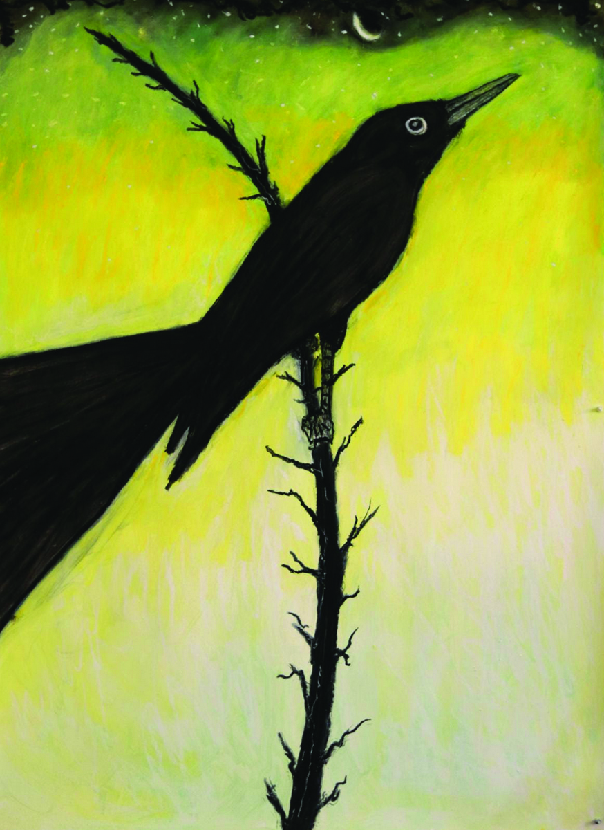 Live Wire, Frank X. Tolbert 2 It has been five years since WCG hosted a show by Houston artist Frank X. Tolbert 2, who has continued to work on his Texas Bird Project. In this show, the artist focuses on the ubiquitous grackle. Tolbert, who works with oil sticks, oil paints and pencil, loves the black birds because of their intelligence, their iridescence and their strong silhouette, seen in this piece where the grackle pops against the painting’s bright background. Through April 15