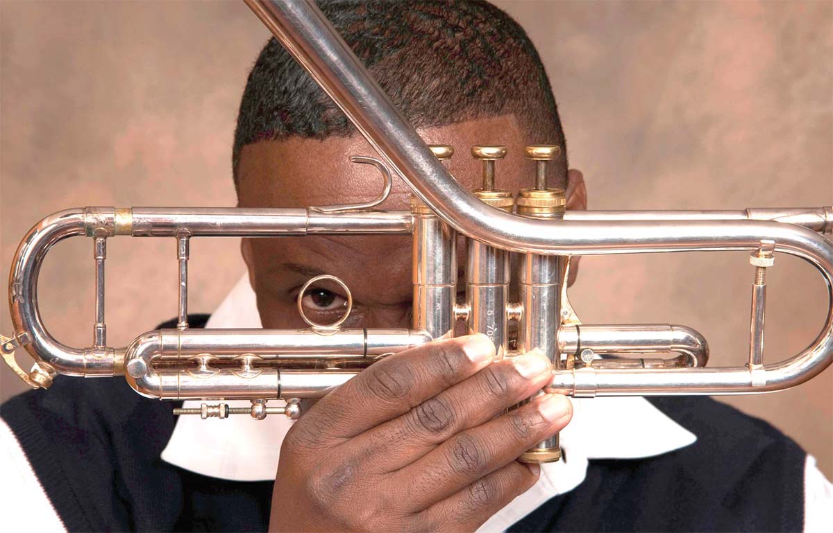 When he was in seventh grade, his mom and dad gave him a trumpet and, within a few months, a lesser known instrument — a flugelhorn. “It’s a mix between a trumpet and a trombone, it’s really mellow,” says Rockwell. “A trumpet is bright; this is a darker, deeper tone.” He took to both naturally. As the son of a minister, helping others was something Rockwell did with equal ease. He readily assisted neighbors with working in the yard and washing cars, as well as making some home repairs, thanks to the father who imparted some carpentry skills along with faith.