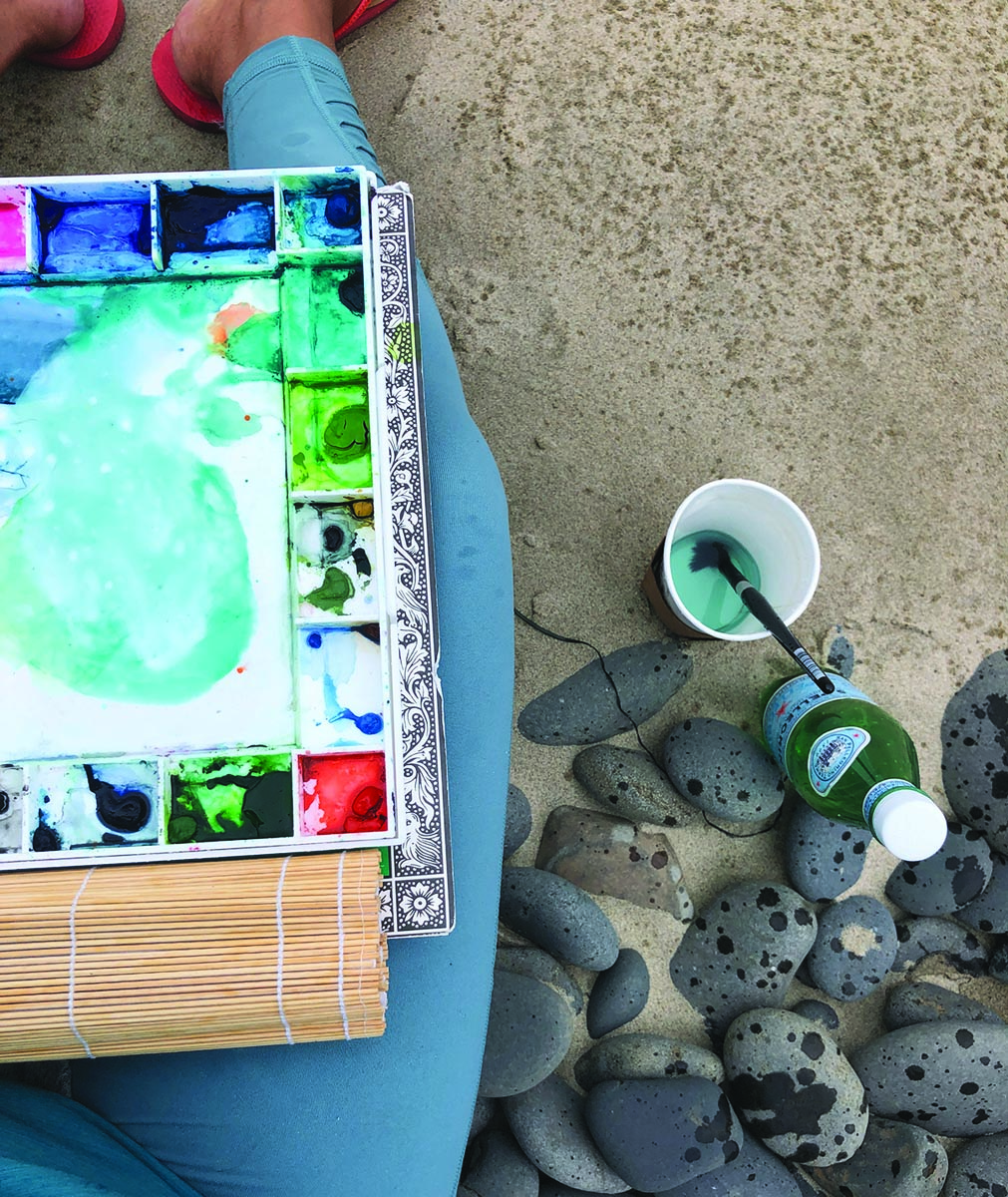 The watercolorist, photographer and poet is now making a name for herself in the city. Her earliest oeuvre focused on nature as well as the climate’s impact on it. These interests developed in her childhood, when her Girl Scout troop visited forests and national parks. She even went to Denmark for a camping trip. Her interests in and escapes into nature further developed when she moved to major cities. “Moving across the world exposed me to different ecosystems,” she says, contrasting the Saudi Arabian desert to the Mediterranean peninsula.