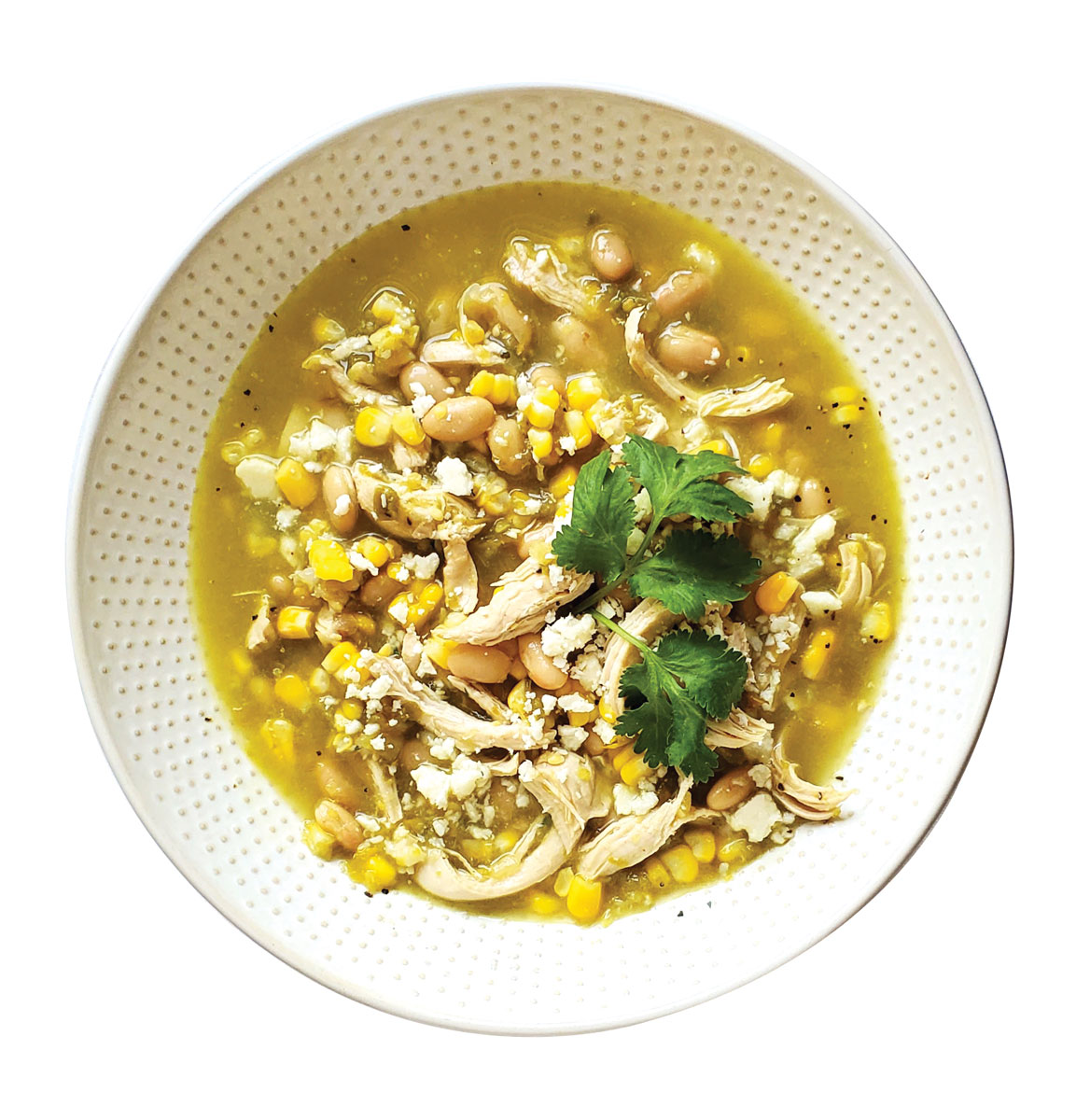 Add shredded chicken back to pot along with coconut milk, broth, salsa verde, beans, corn, green chiles, jalapeno, cumin and garlic powder. Cover and cook on low 1½ hours. Season with salt, pepper and lime juice.